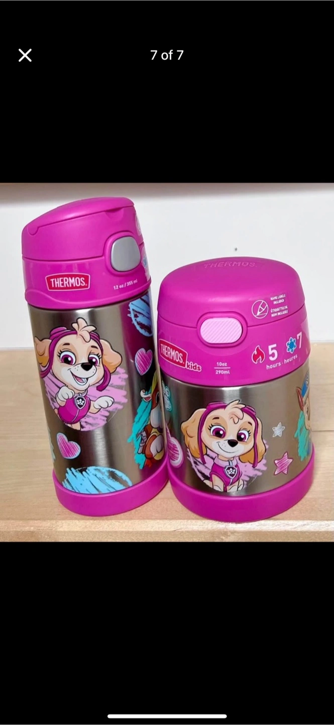 Keep your little one's meals and drinks at the perfect temperature with this Thermos kids set! Includes a food jar and a water bottle in fun designs. The food jar keeps food hot for 5 hours or cold for 7 hours, while the water bottle keeps drinks cold for 12 hours. Perfect for school lunches or outings!