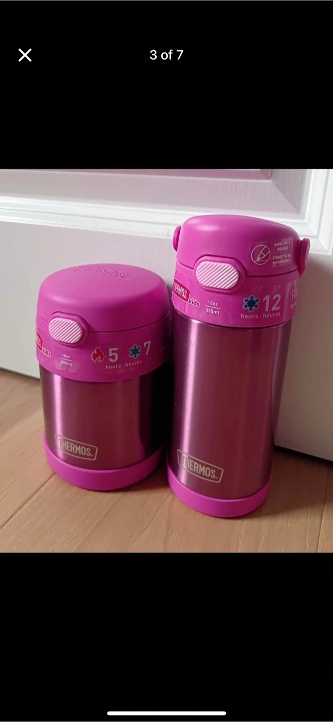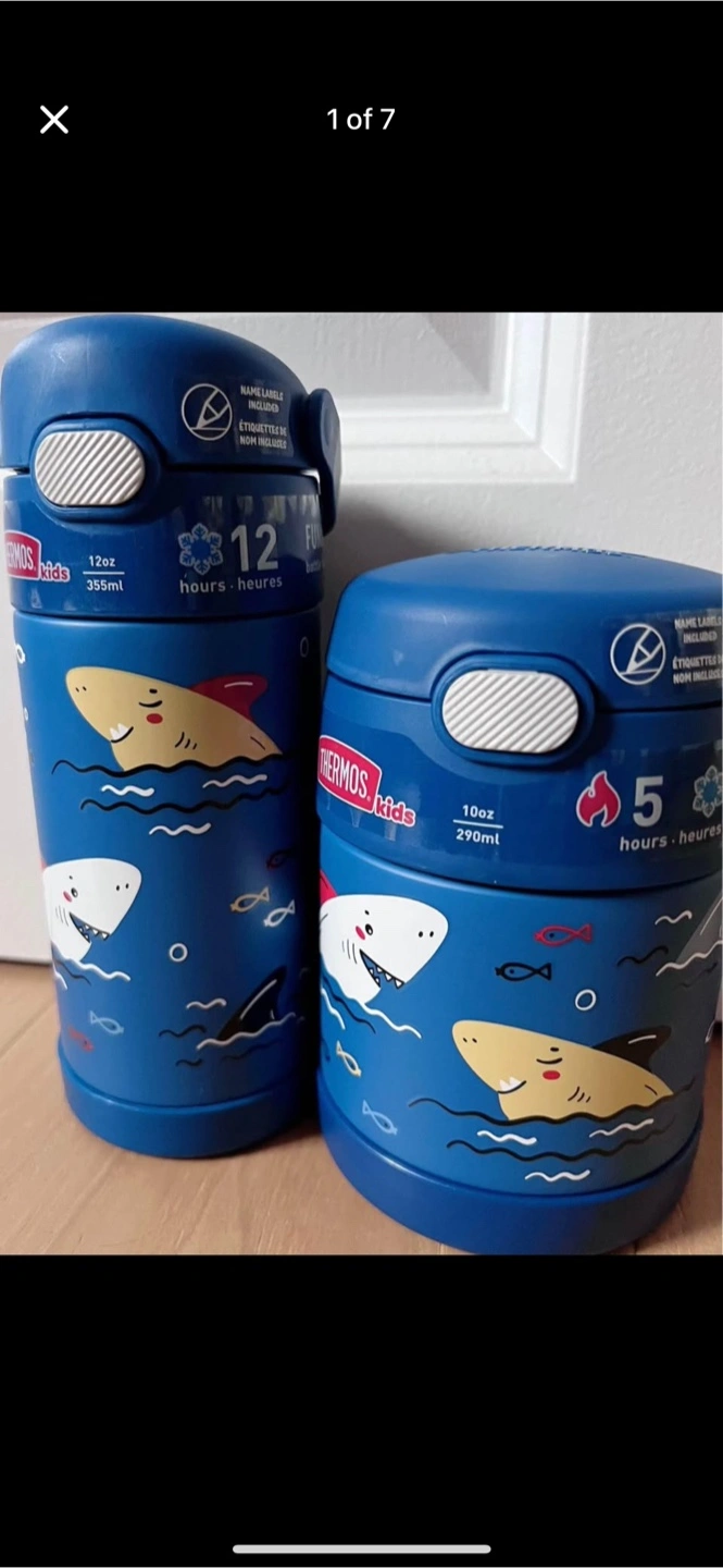 Keep your little one's meals and drinks at the perfect temperature with this Thermos kids set! Includes a food jar and a water bottle in fun designs. The food jar keeps food hot for 5 hours or cold for 7 hours, while the water bottle keeps drinks cold for 12 hours. Perfect for school lunches or outings!