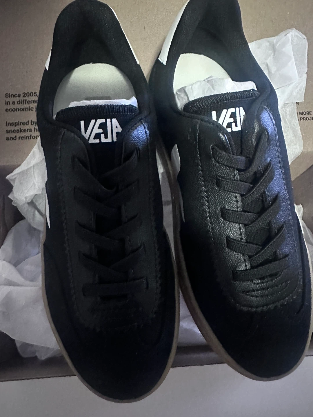 Selling a pair of Veja Small Volley Canvas sneakers in black and white! They're in great shape and come with the original box. The size is US 4.
