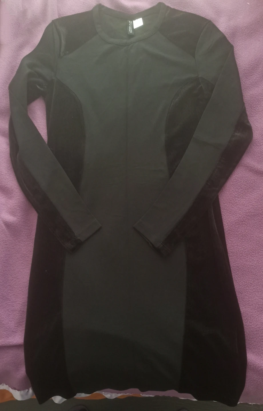New without tag H&M DIvided. This black dress is made of viscose and elastane. It has velvet side panels. It's a size 10.
