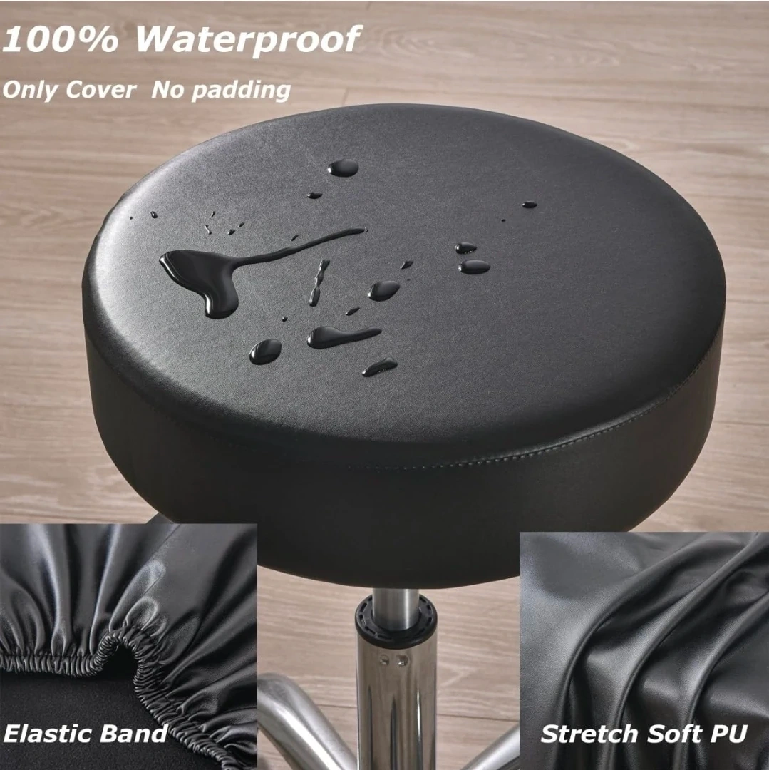 Protect your bar stools with these PU leather covers. They're waterproof and easy to clean with a wet cloth. Features an elastic band for a snug fit.