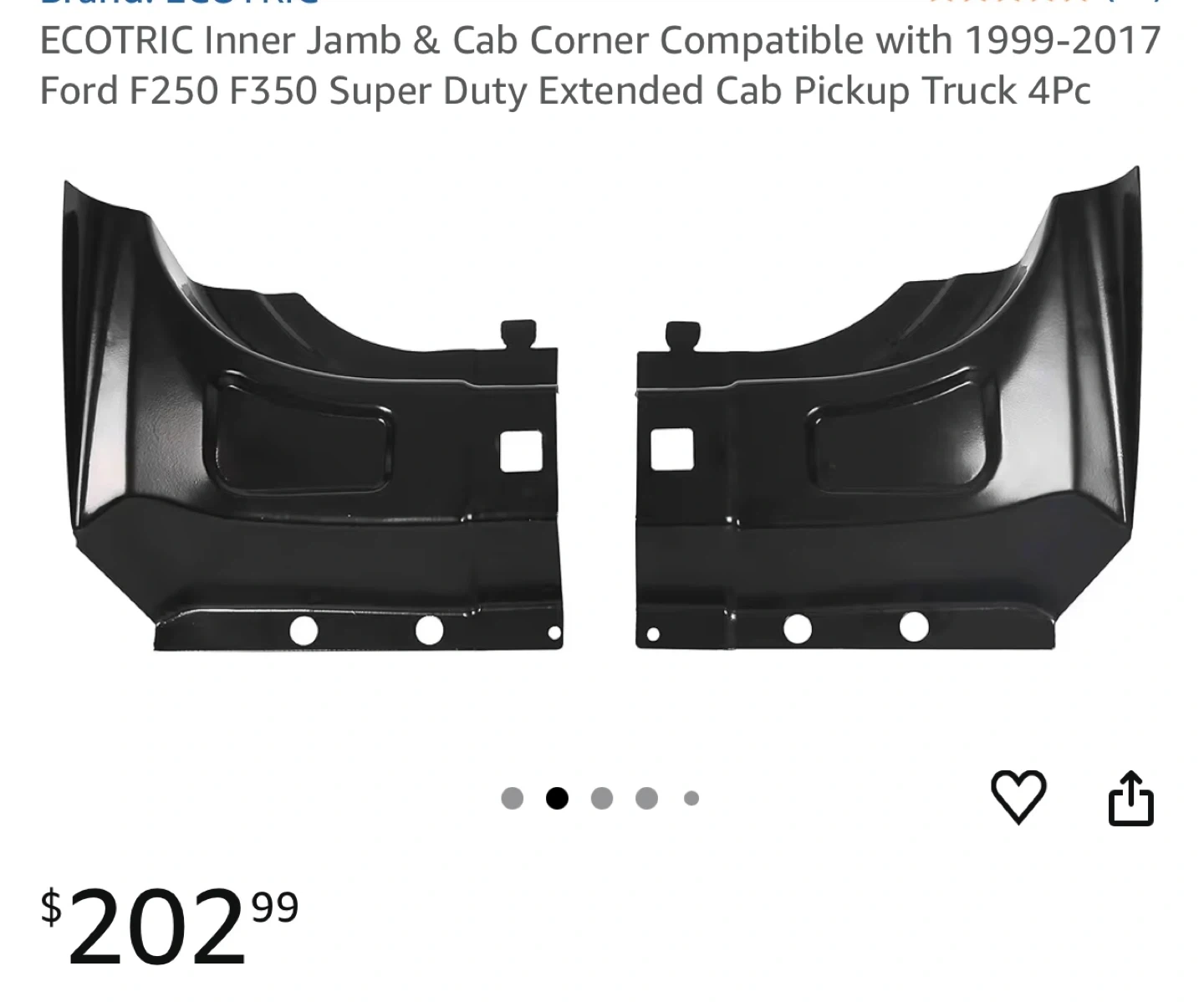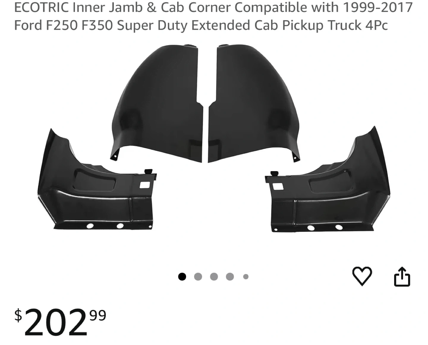 S This set includes 4 pieces for the inner jamb and cab corners. Designed for 1999-2017 Ford F250 and F350 Super Duty Extended Cab pickup trucks. Made of black steel.