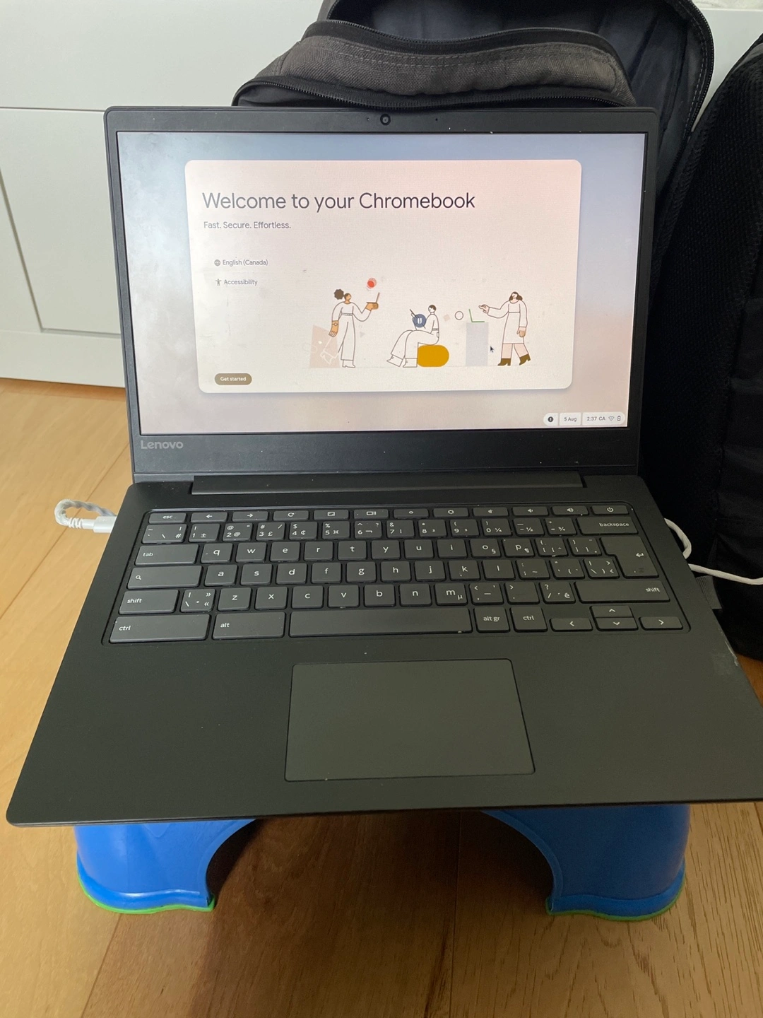 Selling a Lenovo Chromebook without a charging cable. Works very well as a school laptop. Bought in 2020. Has a bit of sticker residue on the top but can be cleaned easily.