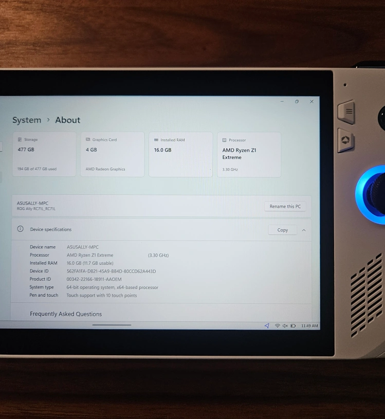 Z1 Extreme Asus Rog Ally, 512gb. Lightly used. Comes with all original packaging, even the charger still has its wrapping. Feel free to test before buying. Message me and I'll send a video of it running, works perfect.