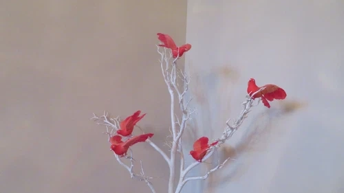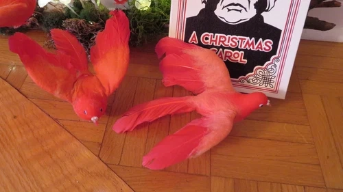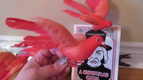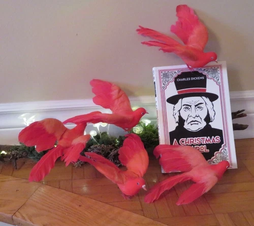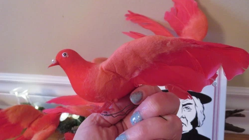 Set of 5 vintage artificial feathered cardinal birds, each about 7 inches long. Perfect for adding a festive touch to wreaths, holiday decorating, or floral arrangements. These are from the 1960s and are made of plastic with real feathers. Dimensions: 7" L x 3" H x 6" D. All my vintage items are sold as is. Please review the photos closely as they are part of the item's description. I do my best to show all aspects of the items, including any noticeable flaws. Measurements are included in the description. Colors may appear differently on various screens. Each item is cleaned before listing. Let me know if you're interested!