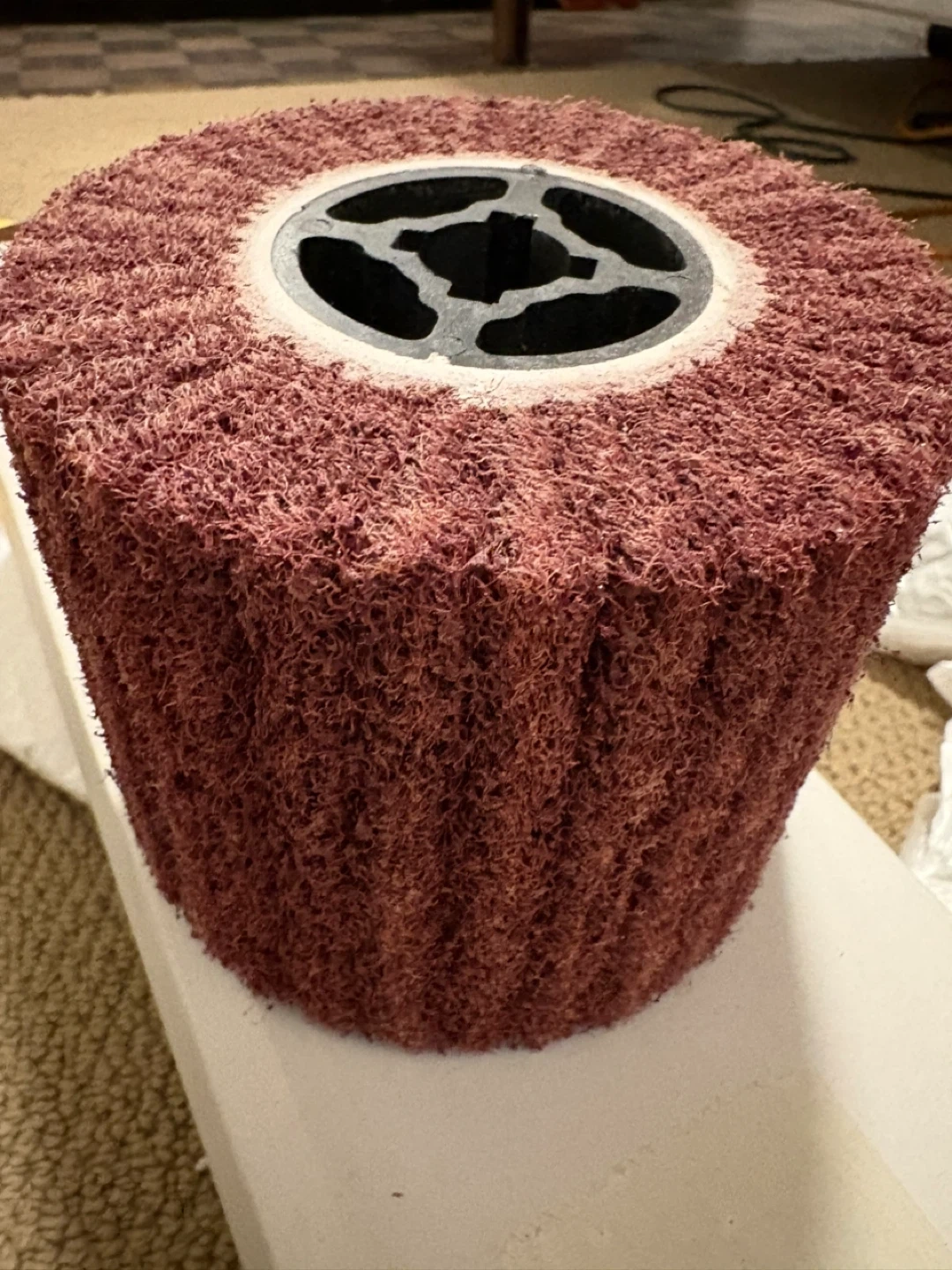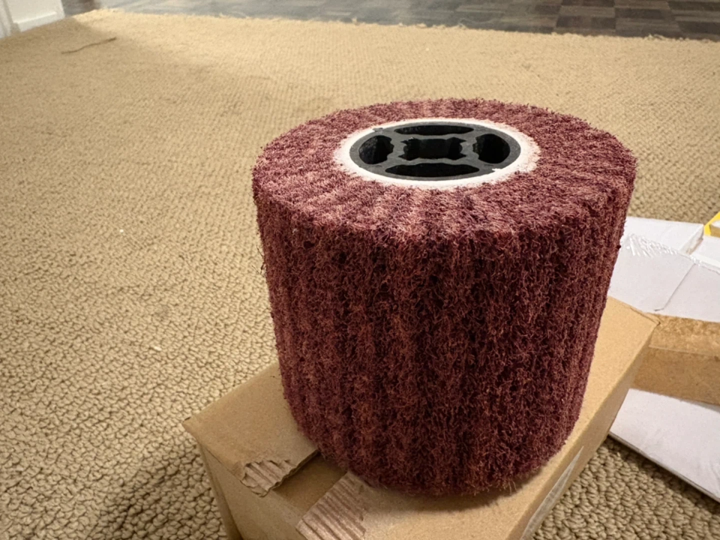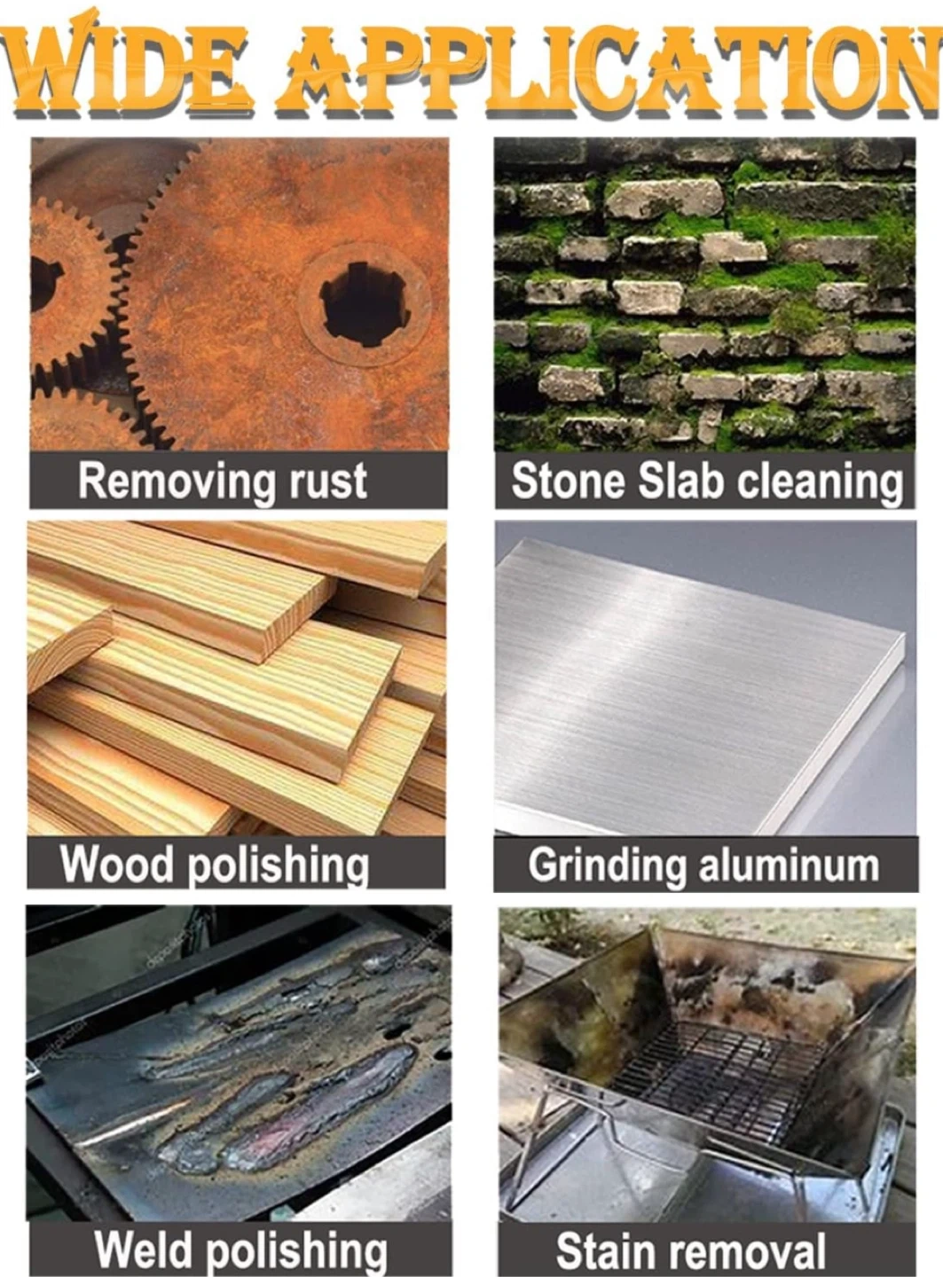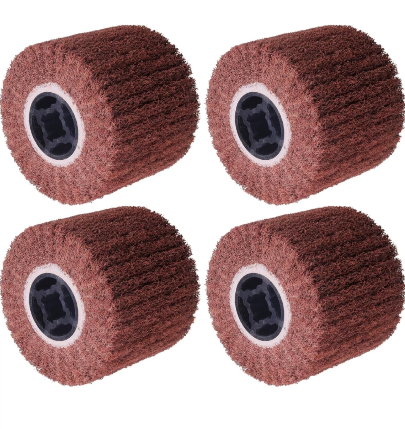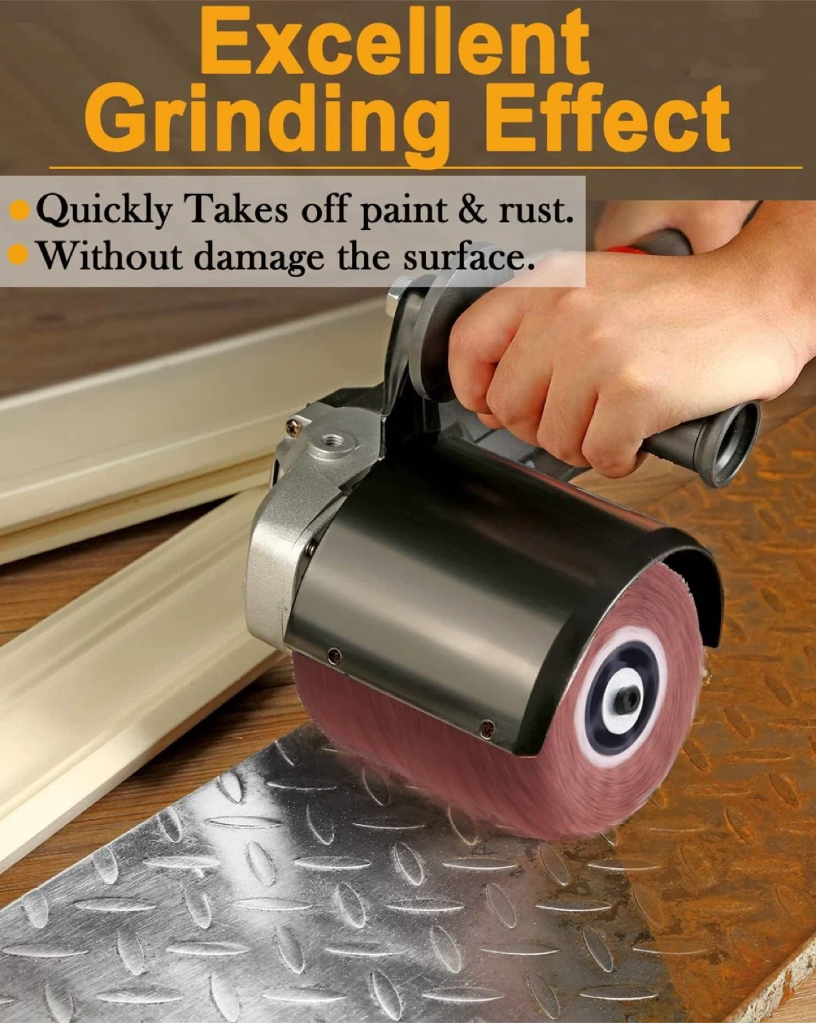 This is a grinding polishing wheel head designed for removing rust, stone slab cleaning, wood polishing, grinding aluminum, weld polishing, and stain removal. It quickly takes off paint and rust without damaging the surface and leaves a smooth surface. The buckle has a cross lock cylinder design so that you can work at ease. It resists high temperature.
