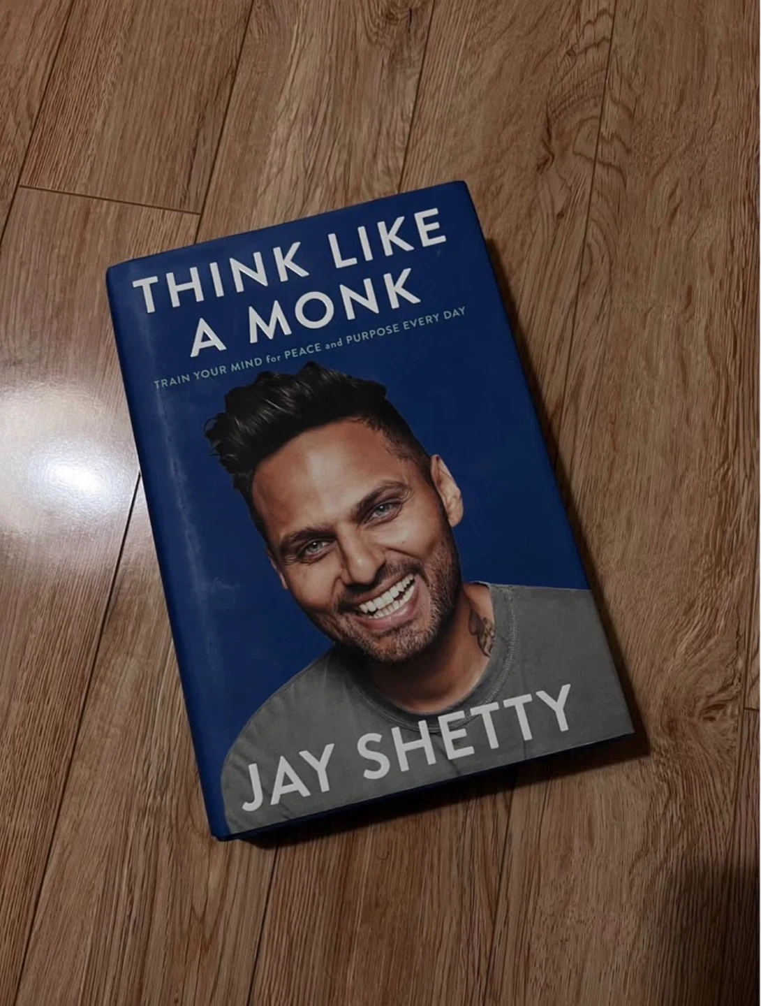 This is Jay Shetty's 'Think Like a Monk' book. It trains your mind for peace and purpose every day. It's a guide for personal growth and mindfulness.