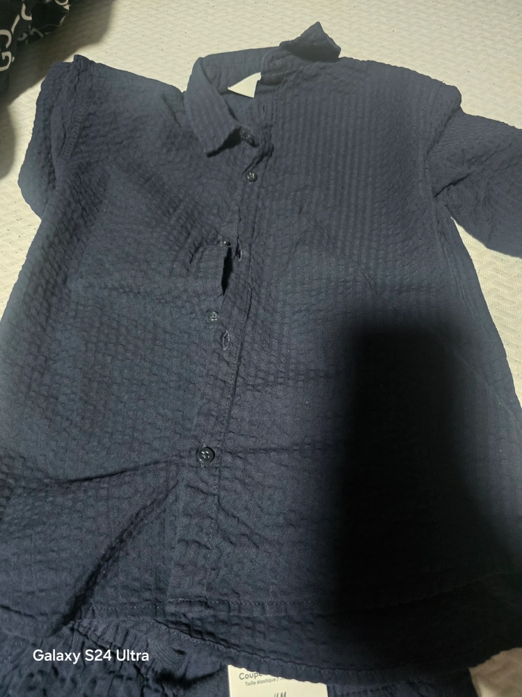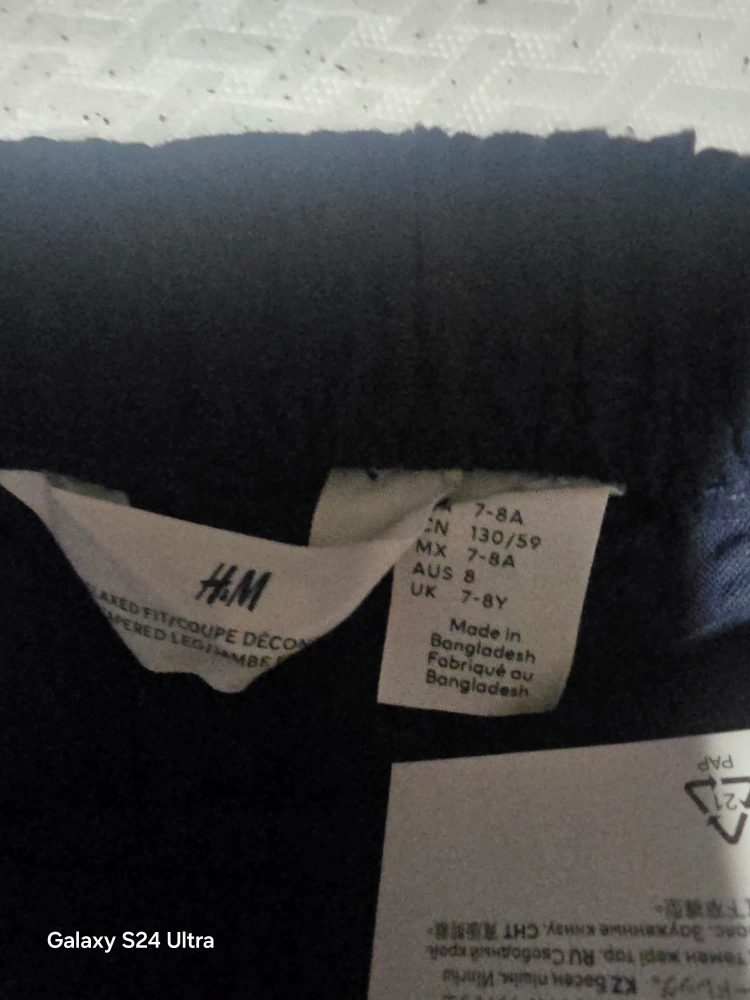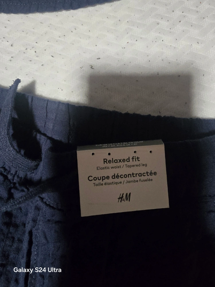 Selling a BRANDNEW H&M kids set in navy blue. This set includes a shirt and pants, both in size 7-8A. The pants feature a relaxed fit with an elastic waist and tapered leg. Perfect for your little one!