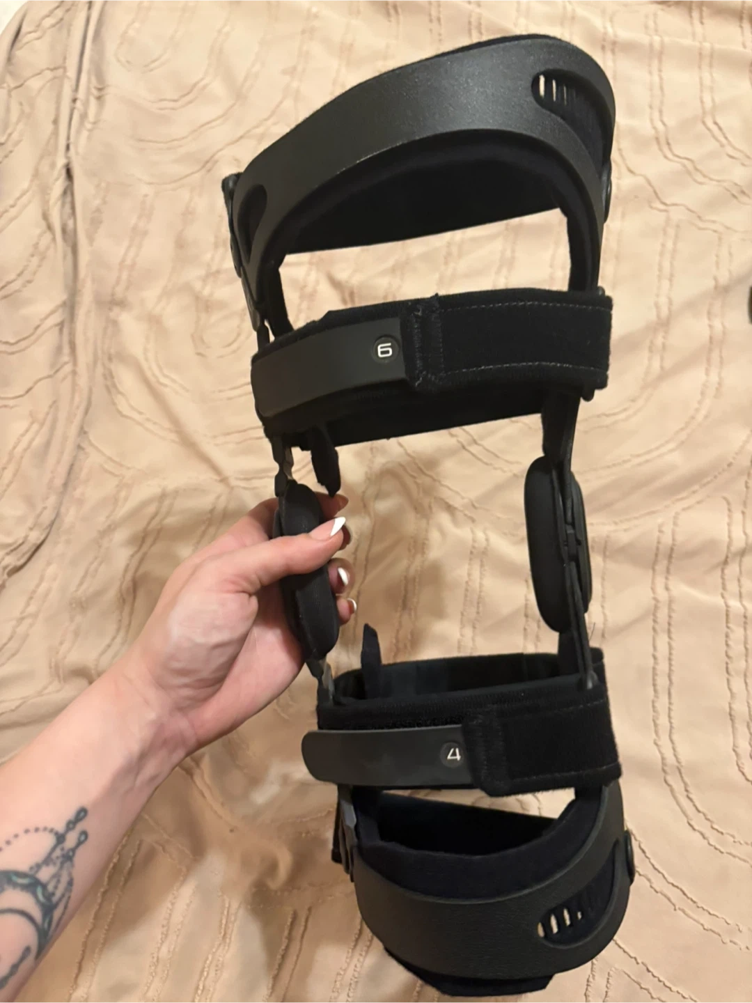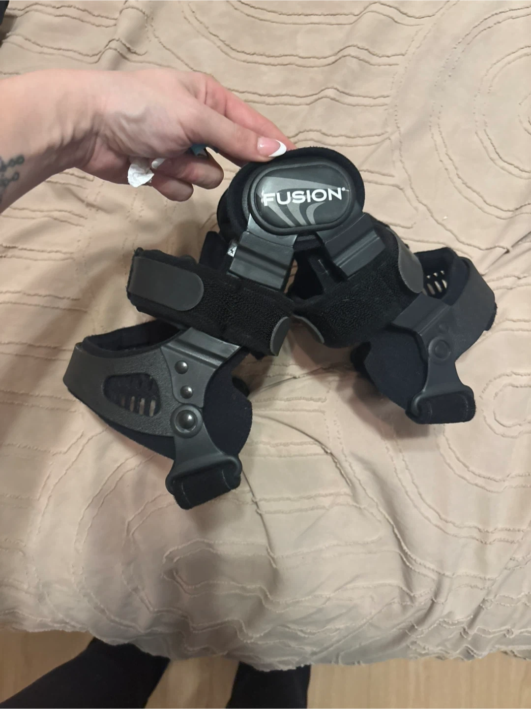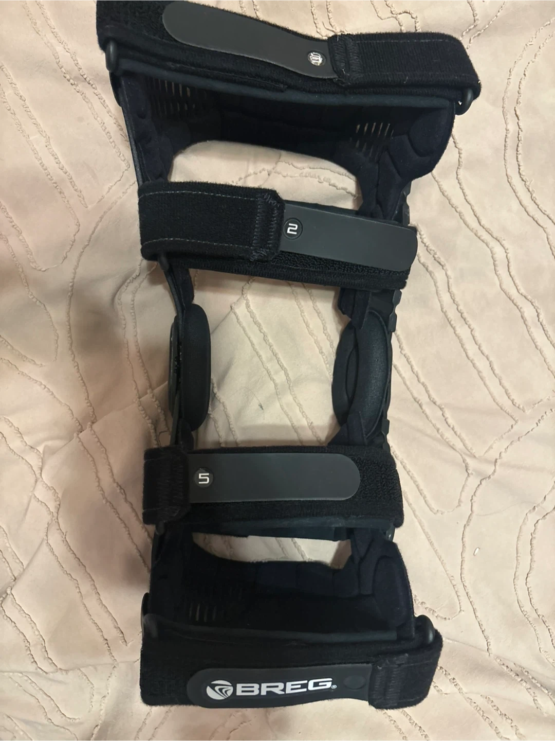 This is a Breg Fusion Custom knee brace. It's designed for support and stability. Made with durable black materials.