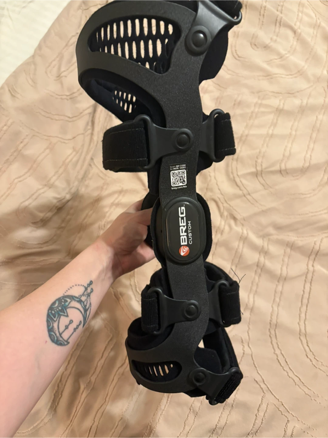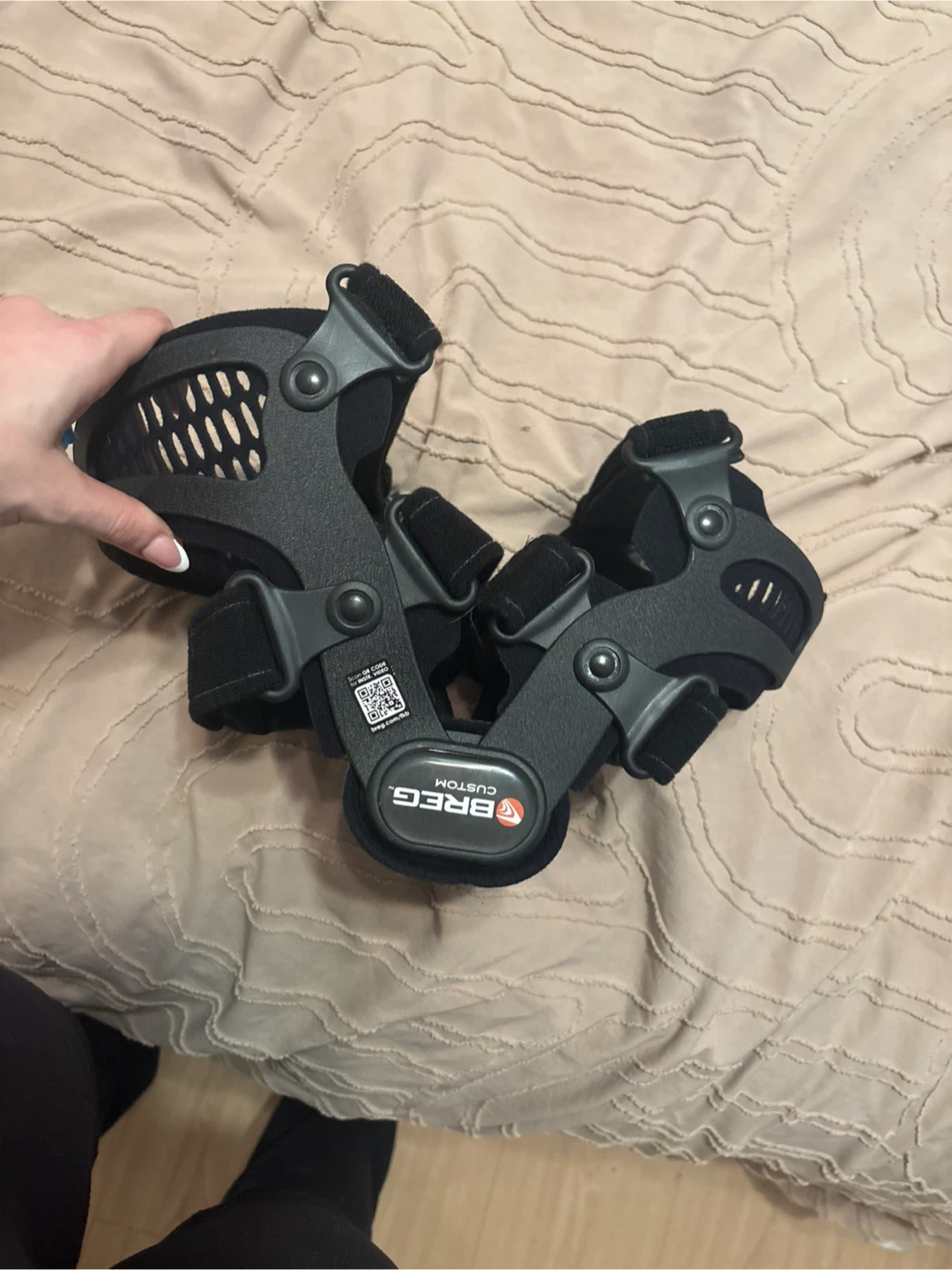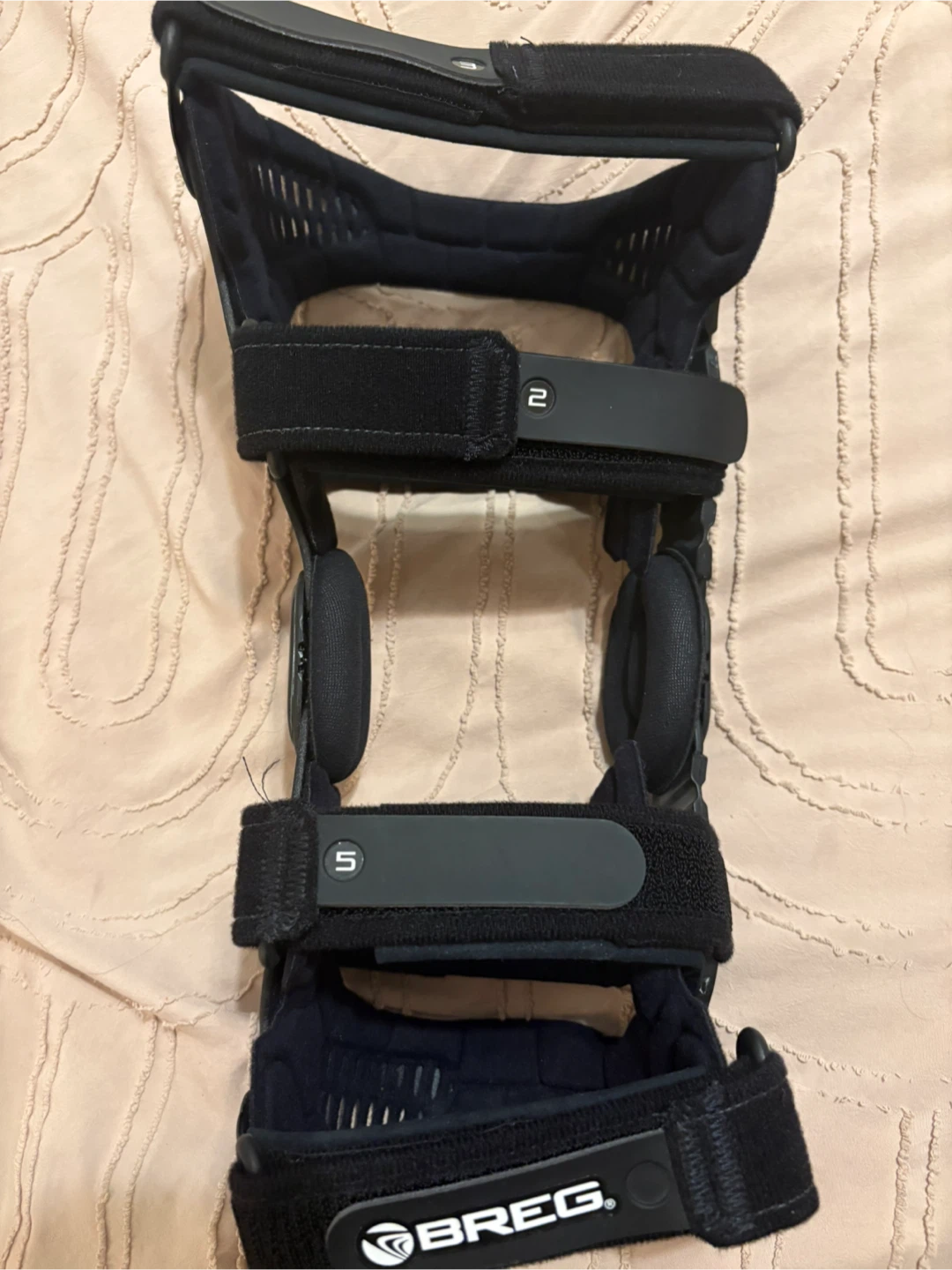 This is a Breg Fusion Custom knee brace. It's designed for support and stability. Made with durable black materials.