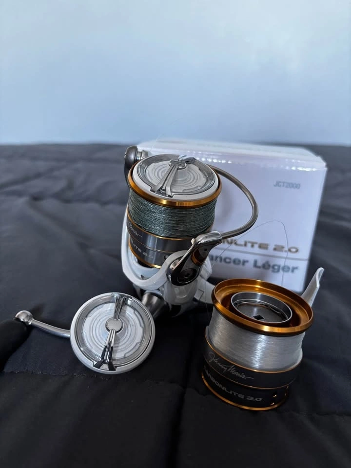 Johnny Morris CarbonLite 2.0 spinning reel in excellent condition. Smooth retrieve, reliable drag, and well cared for. Comes with the original box, extra spool, and extra drag cap. Very lightweight and balanced reel — great for bass, walleye, trout, and all-around freshwater fishing. The extra spool is perfect for running different line setups. Includes: Johnny Morris CarbonLite 2.0 Size 2000 spinning reel, extra spool, extra drag cap, original box. Fully functional, smooth operation. Line currently spooled (can remove if preferred). Pickup preferred.