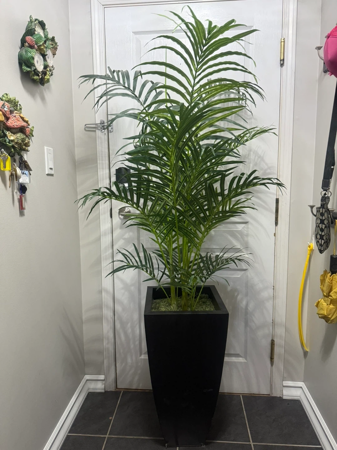 80Selling a silk plant nearly 6 ft Areca Palm Tree with Black Wash Planter!