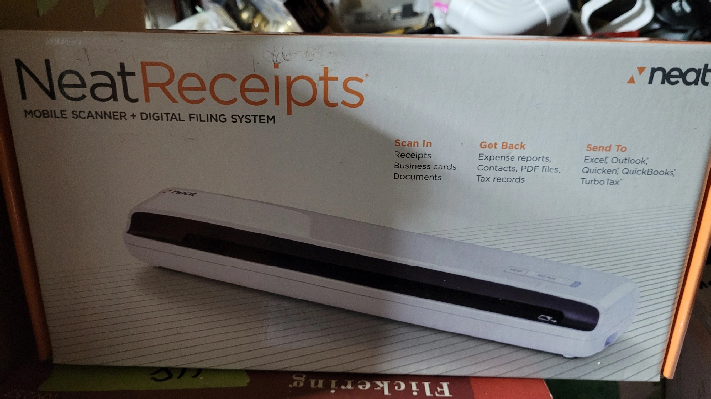15Selling a NeatReceipts mobile scanner and digital filing system! It helps to scan in receipts, business cards, and documents, and allows you to get back expense reports, contacts, PDF files, and tax records. You can also send to Excel, Outlook, Quicken, QuickBooks, and Turbo Tax. Comes with a travel case and software