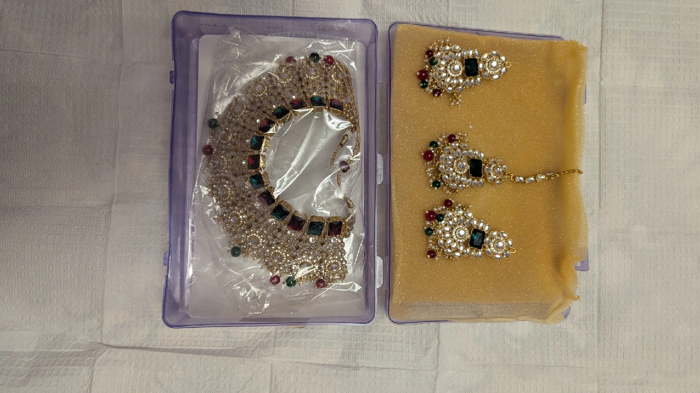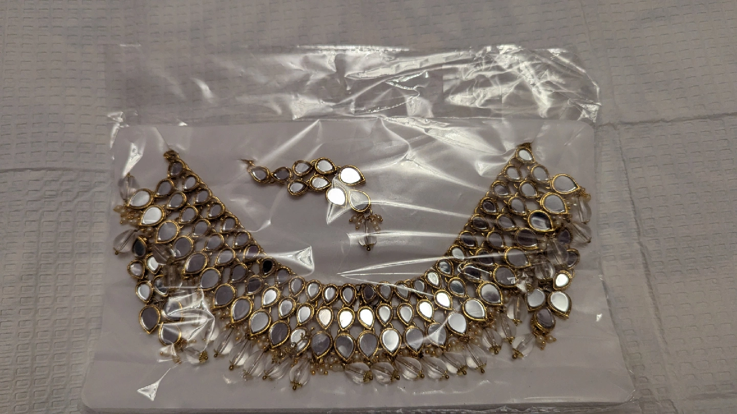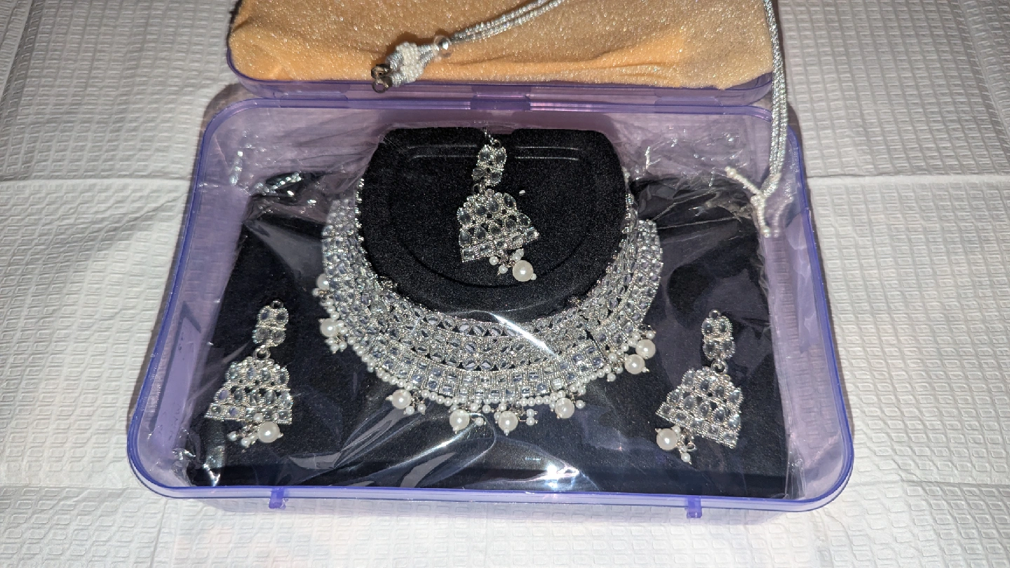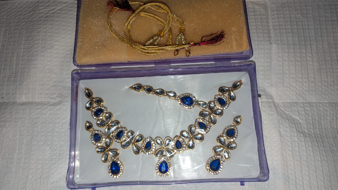 Selling a beautiful necklace and earring set. It comes with a necklace, earrings, and a headpiece. The set is in excellent condition and comes in its original box. Starting at $25. Have plenty more, let me know which color you're interested in