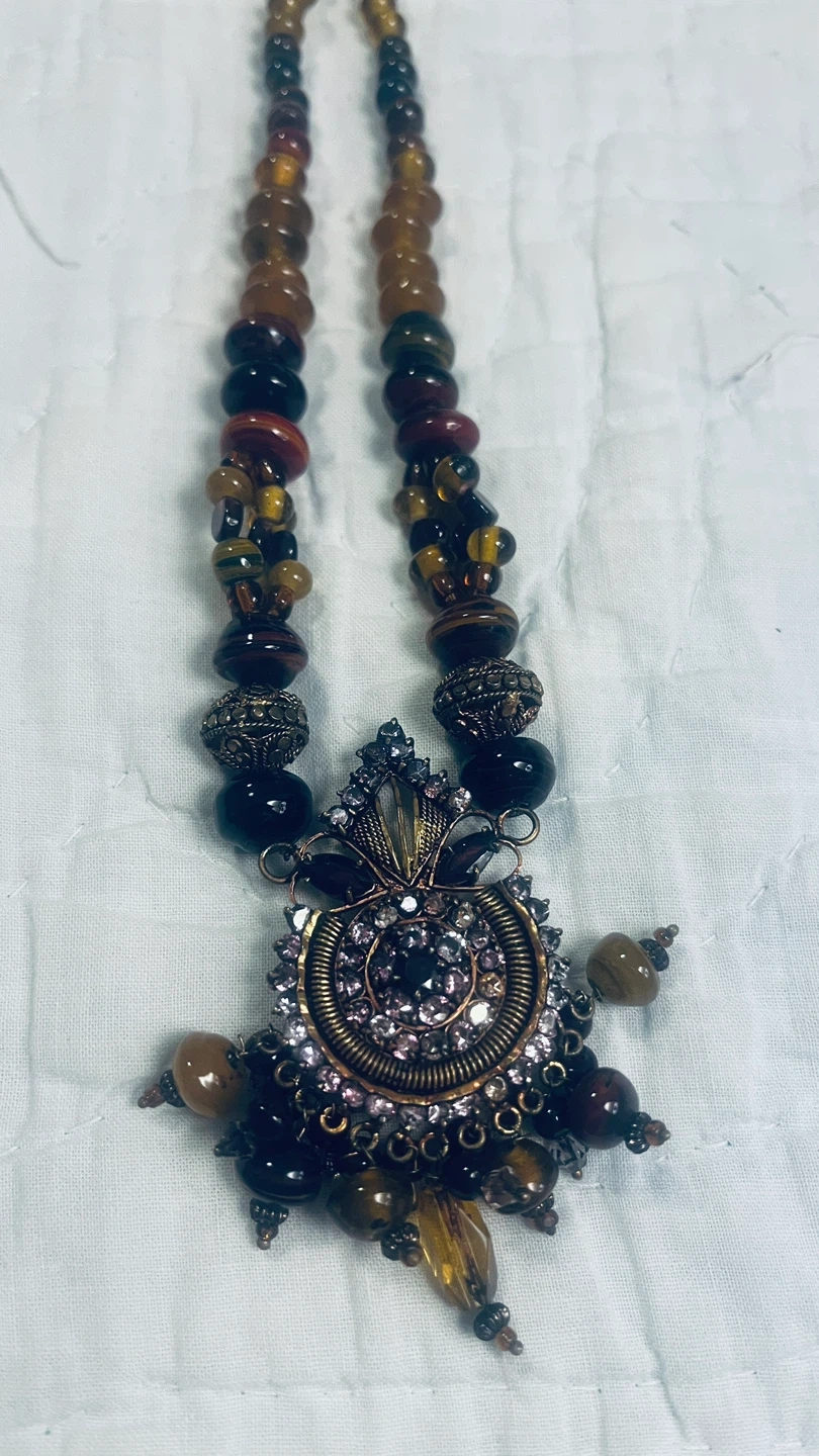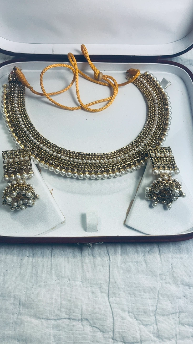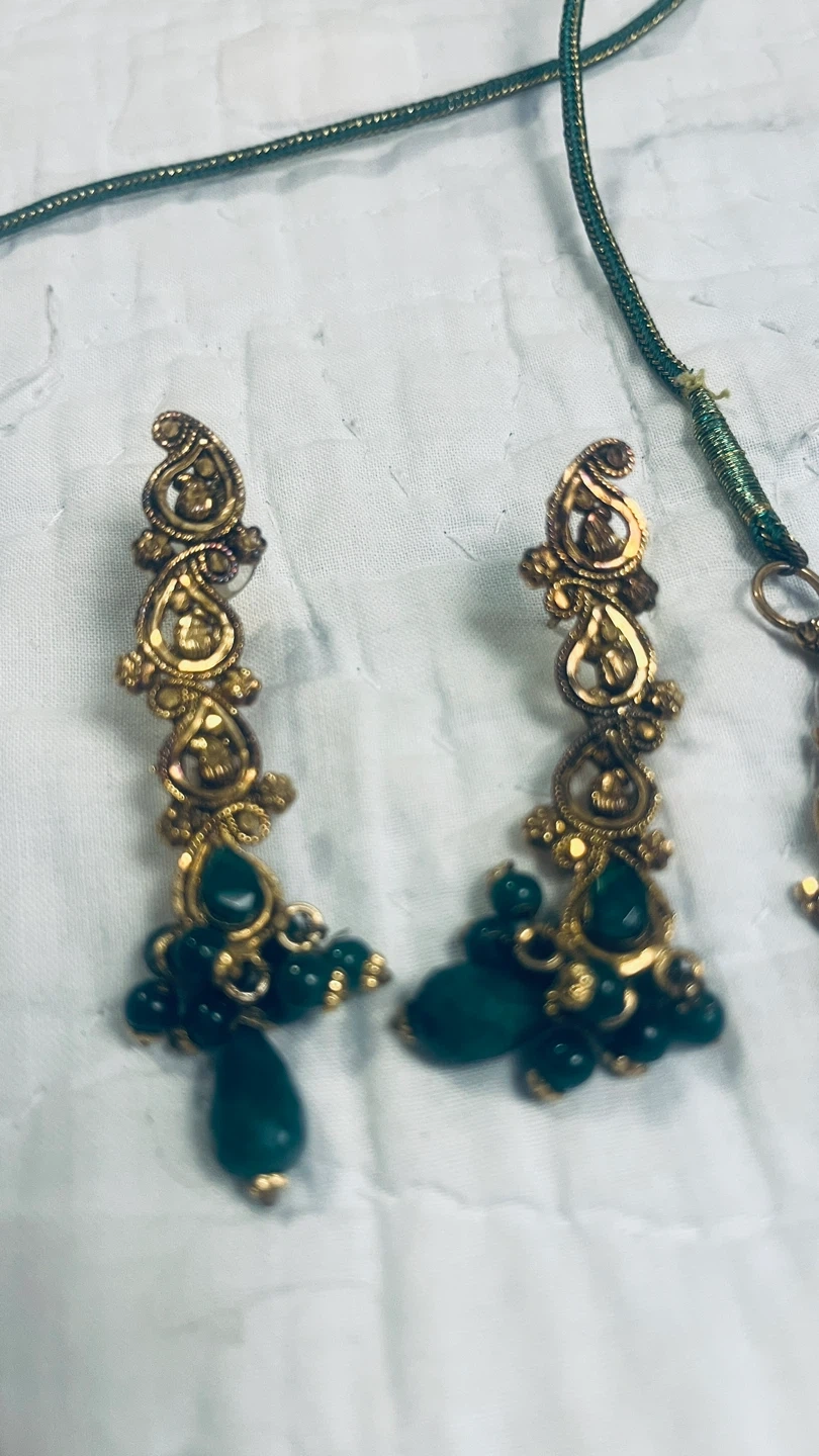 9Beautiful necklace and earrings set featuring gold detailing and green accents. Perfect for adding a touch of elegance to any outfit!