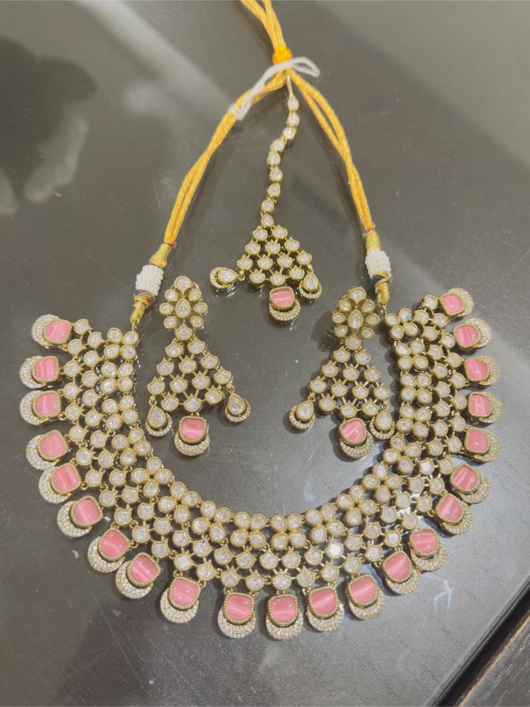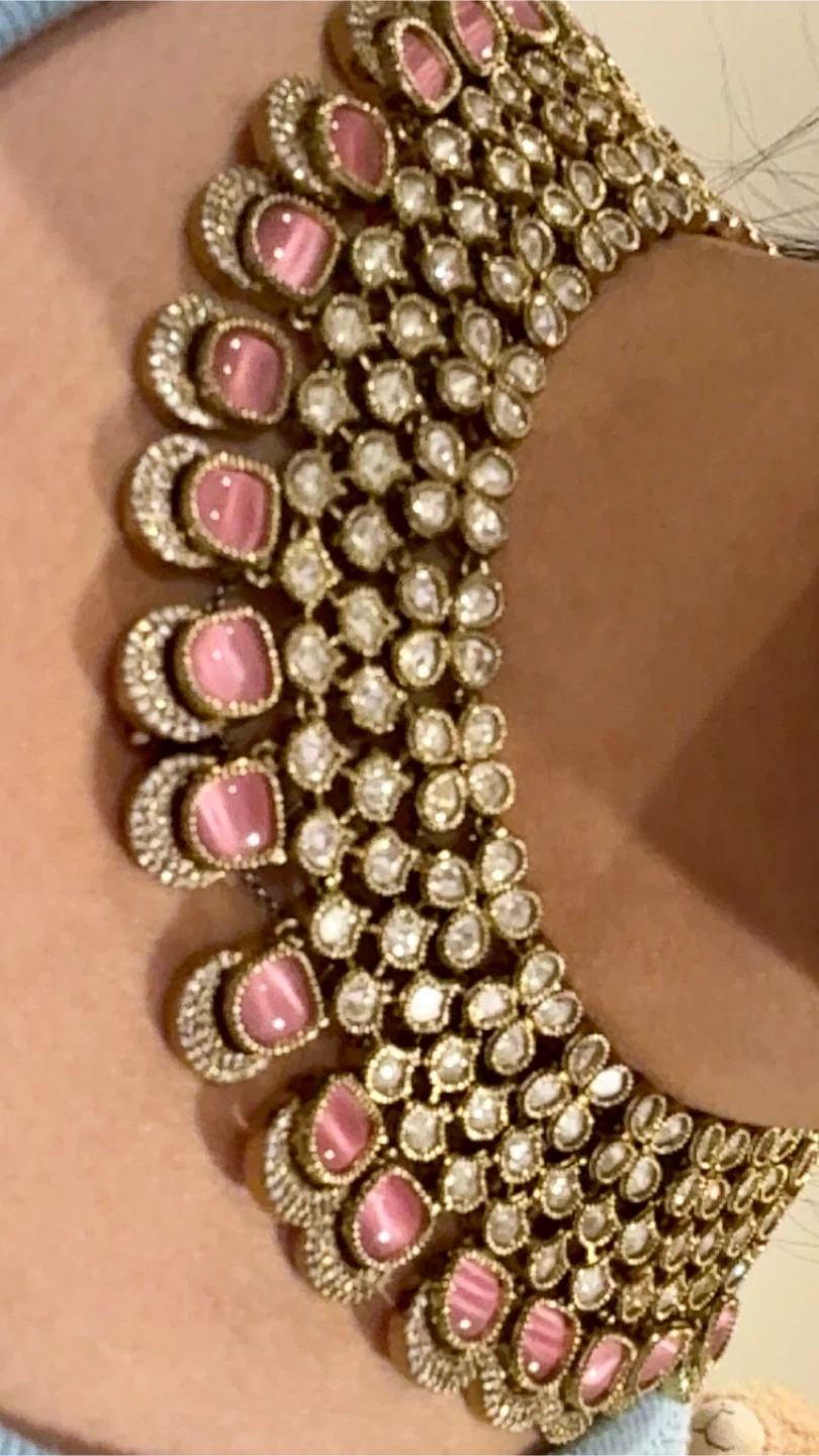 10Condition: Brand new, never worn Original Price: $200 Asking Price: $130 This stunning Indian jewellery set includes a choker-style necklace, matching earrings, and a tikka. The set is designed with sparkling stones and elegant pink accents, perfect for weddings, parties, and festive occasions. π Details: Necklace with adjustable dori (thread tie) Matching statement earrings Coordinating tikka High-quality craftsmanship Comfortable to wear for long events π A beautiful piece to complete your ethnic look at a great price!