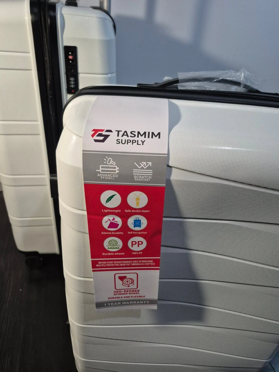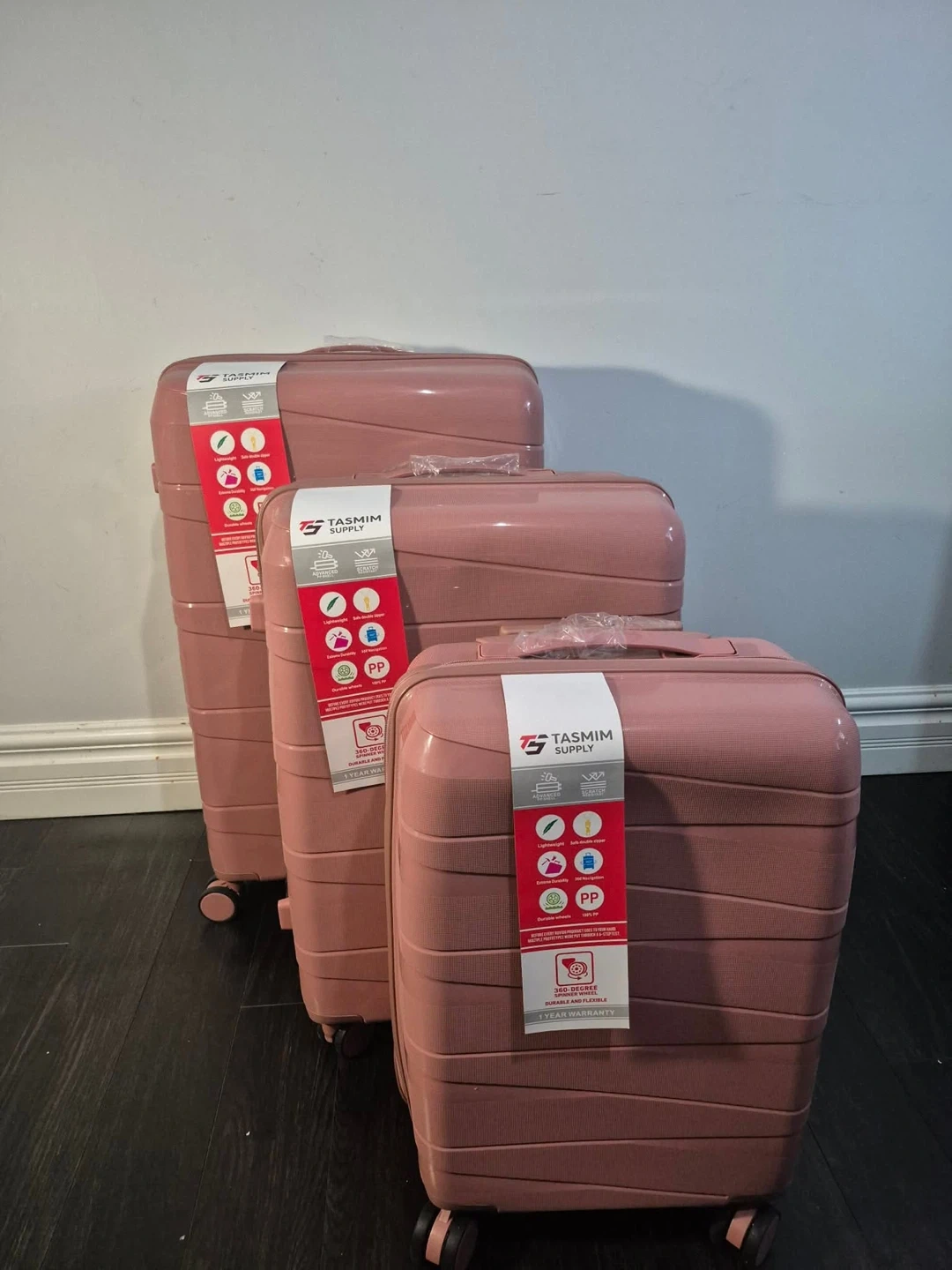 This is a 3-piece luggage set from Tasmim Supply. It's made of durable PP material. The suitcases are lightweight and water-resistant. They're perfect for any travel needs!