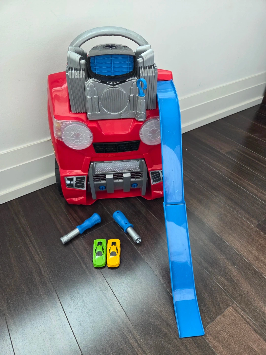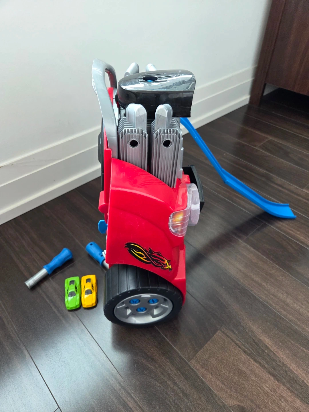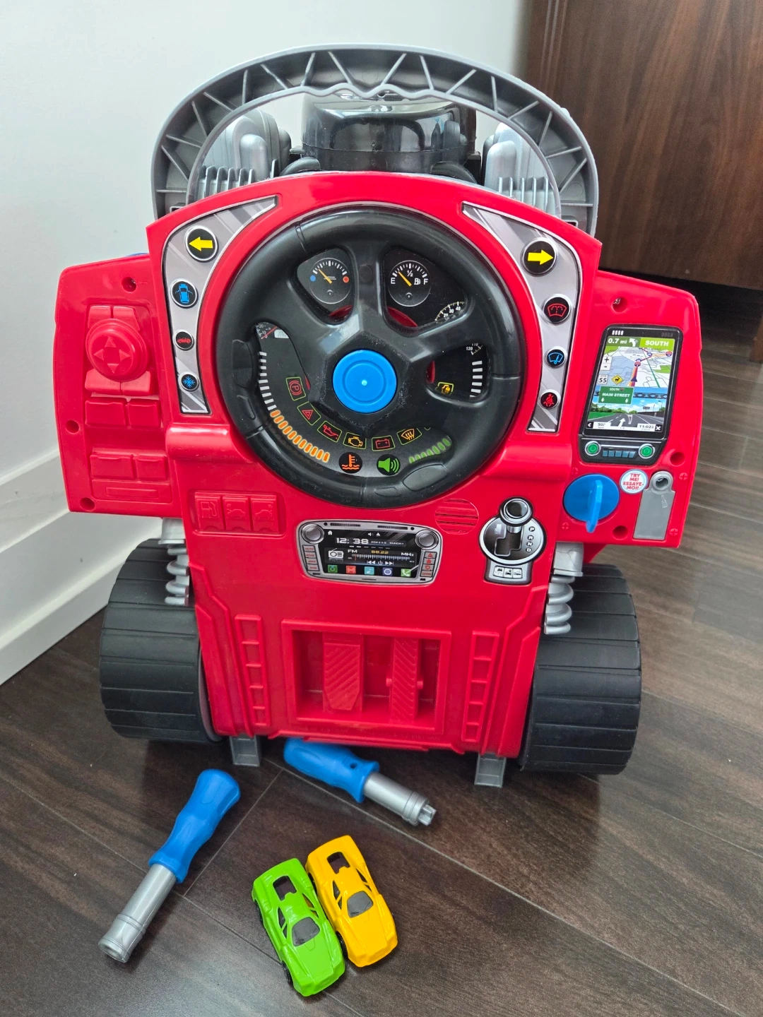 This interactive activity centre looks like a car and lets kids build and take apart. It's great for little mechanics who love cars and tools. Includes toy cars and wrenches.