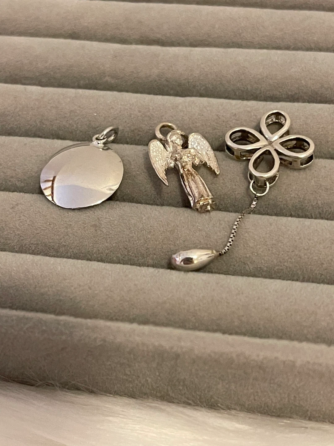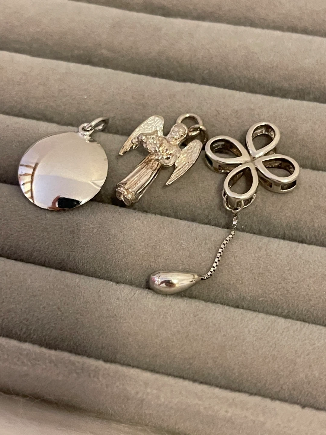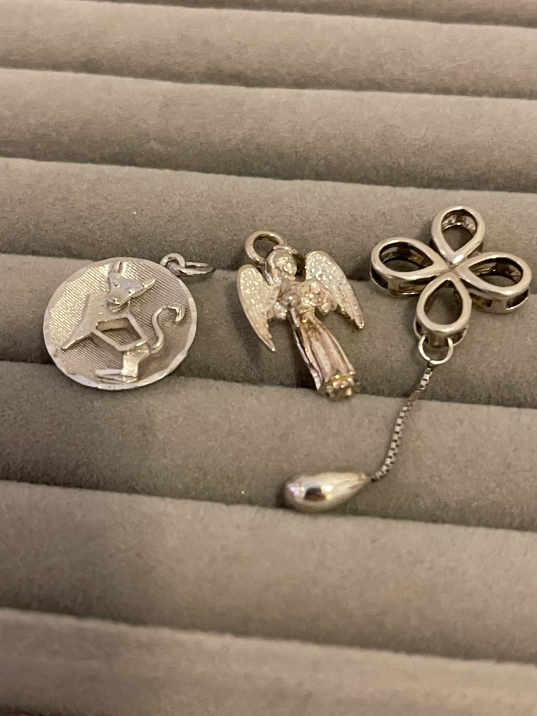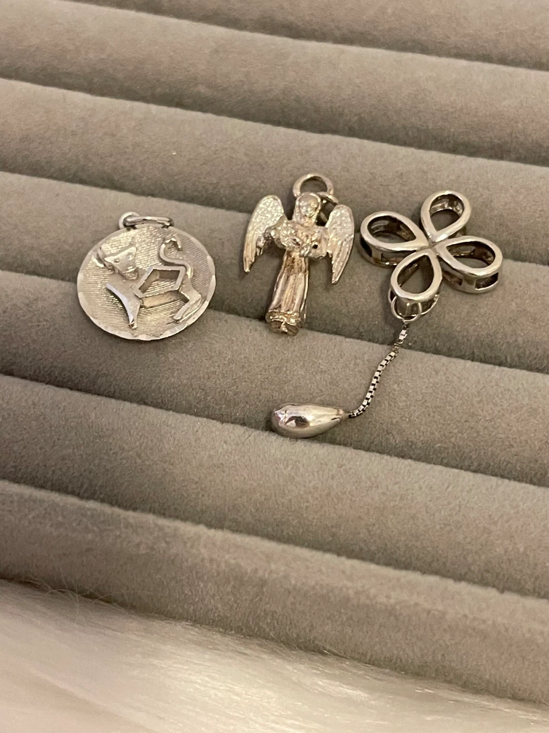 Three Sterling Silver Charms: Angel, Clover, and Horse