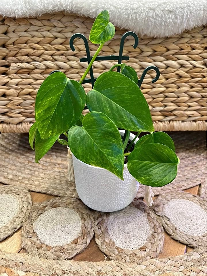 50Beautiful variegation on this Neon Queen Pothos in a 4” nursery pot with trellis and a white textured boho cover pot with tassels. Pick up at The Plant Witch in Erin Ridge, St.Albert. Check out my other listings or go to my website to see different potted plants, decorative plant stakes, propagation jars, Suncatchers and more! 🪴