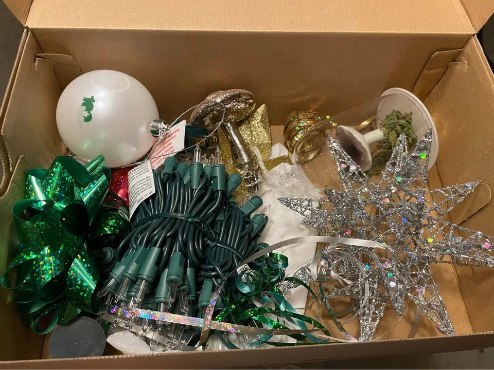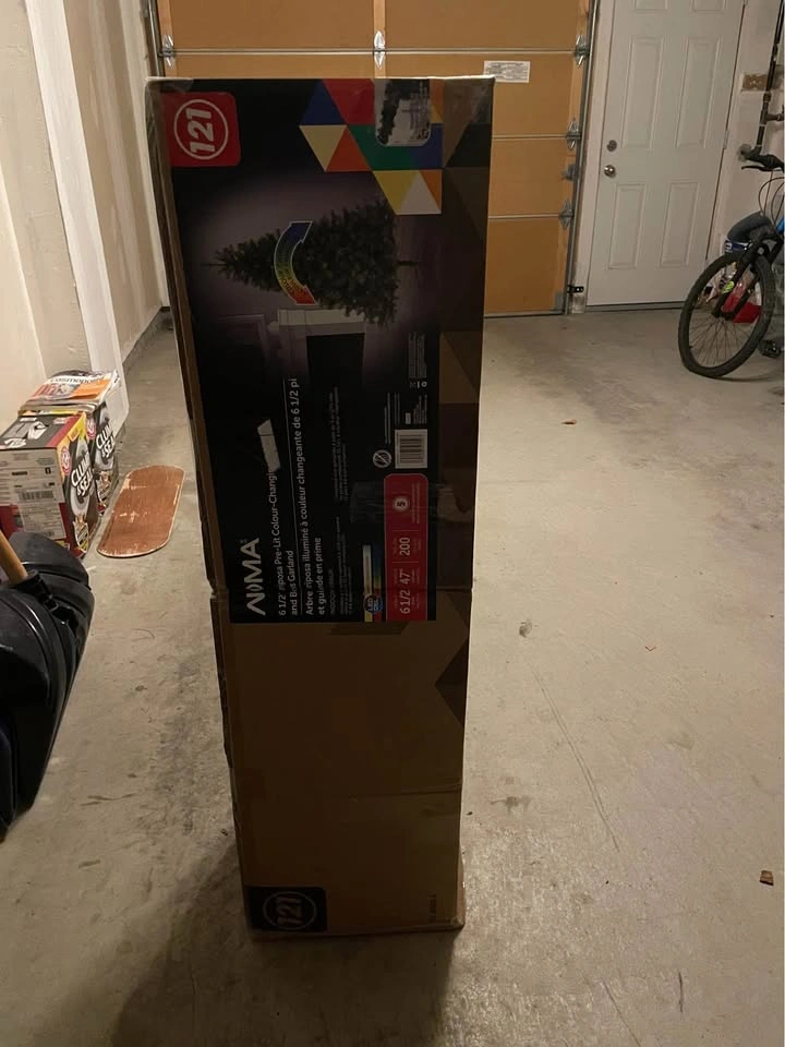 - 6.5 ft tall artificial Christmas tree.