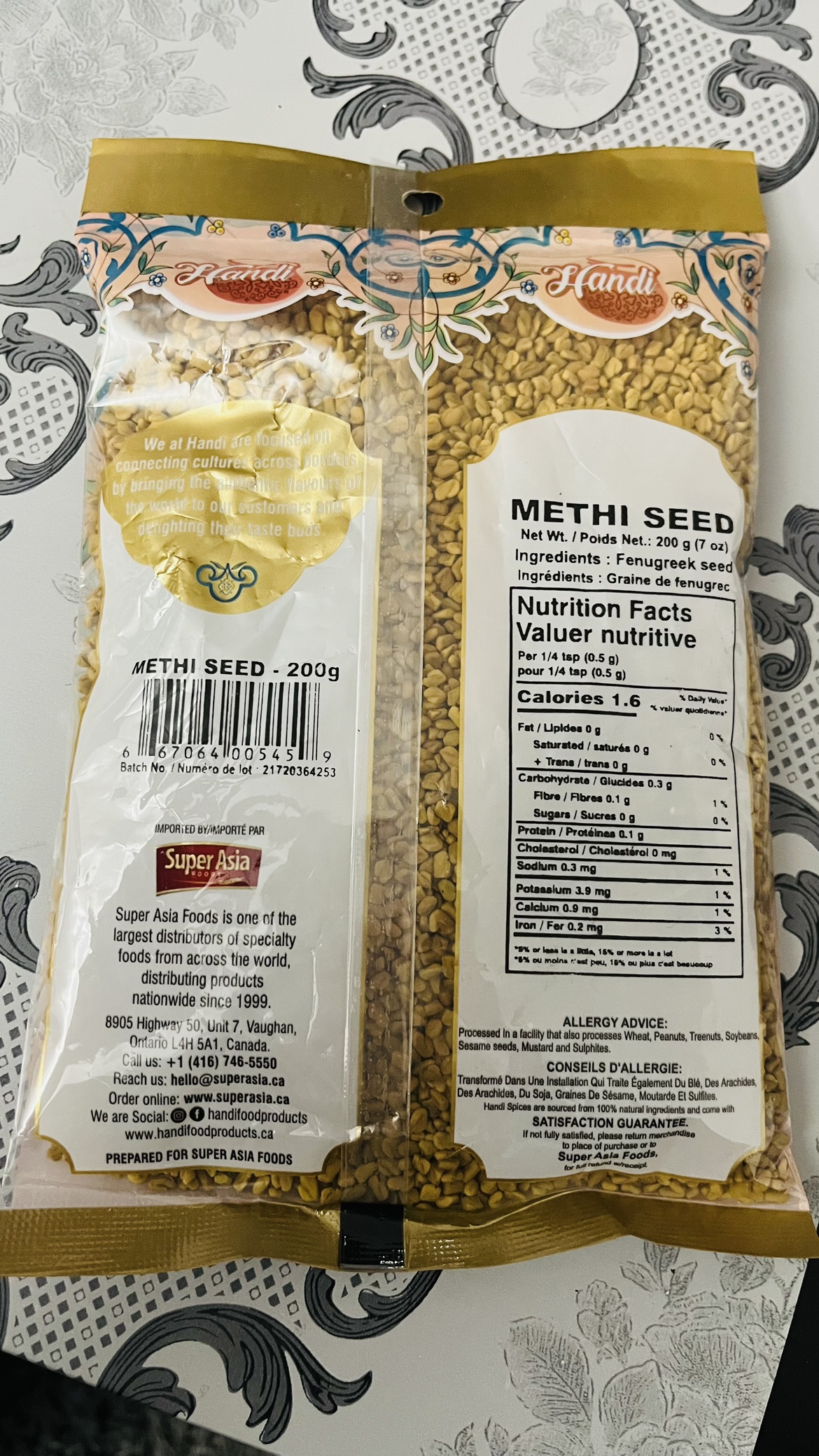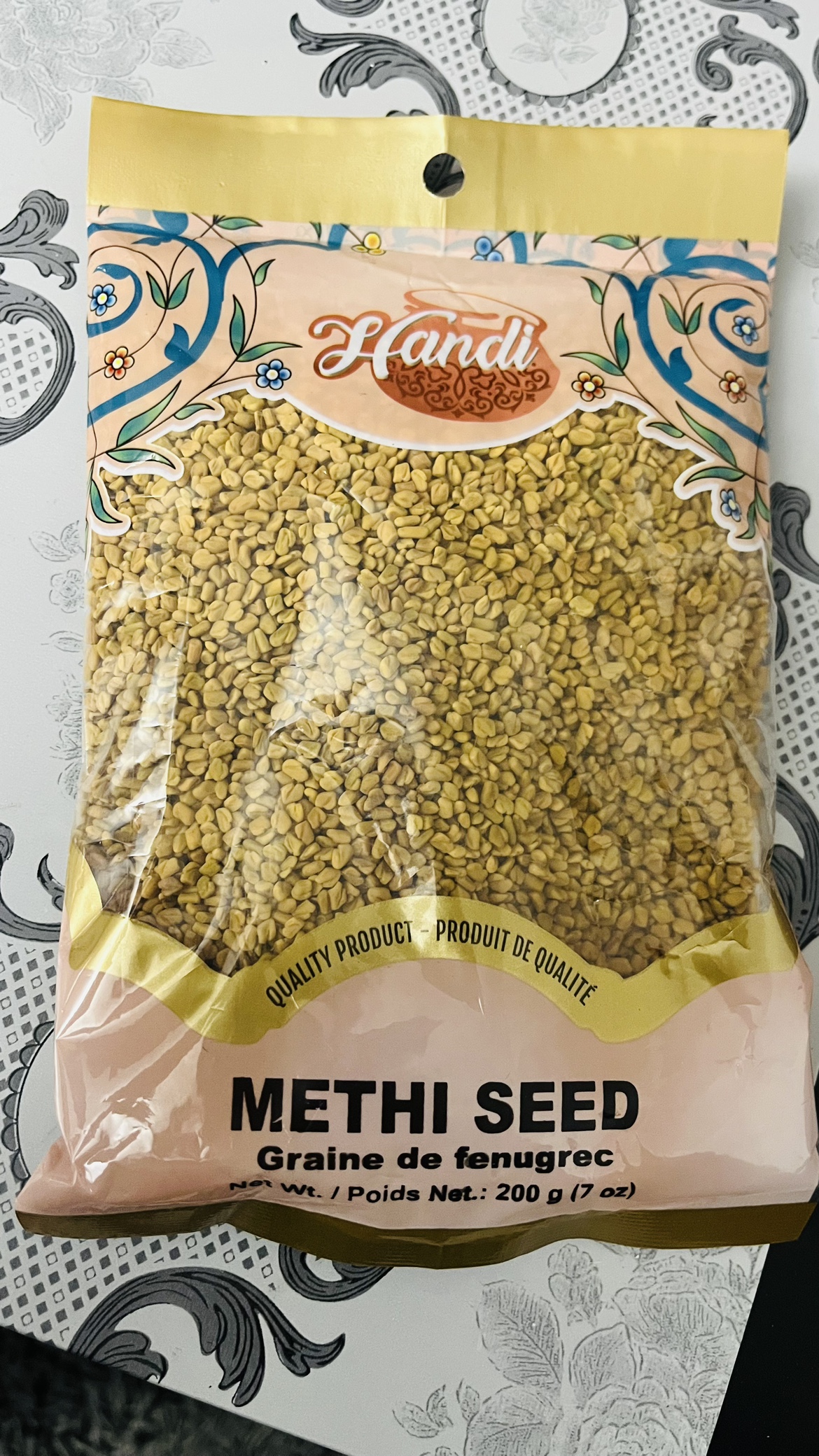 200g bag of Hendi brand Methi (Fenugreek) seed. The bag is sealed and the contents are in good condition.