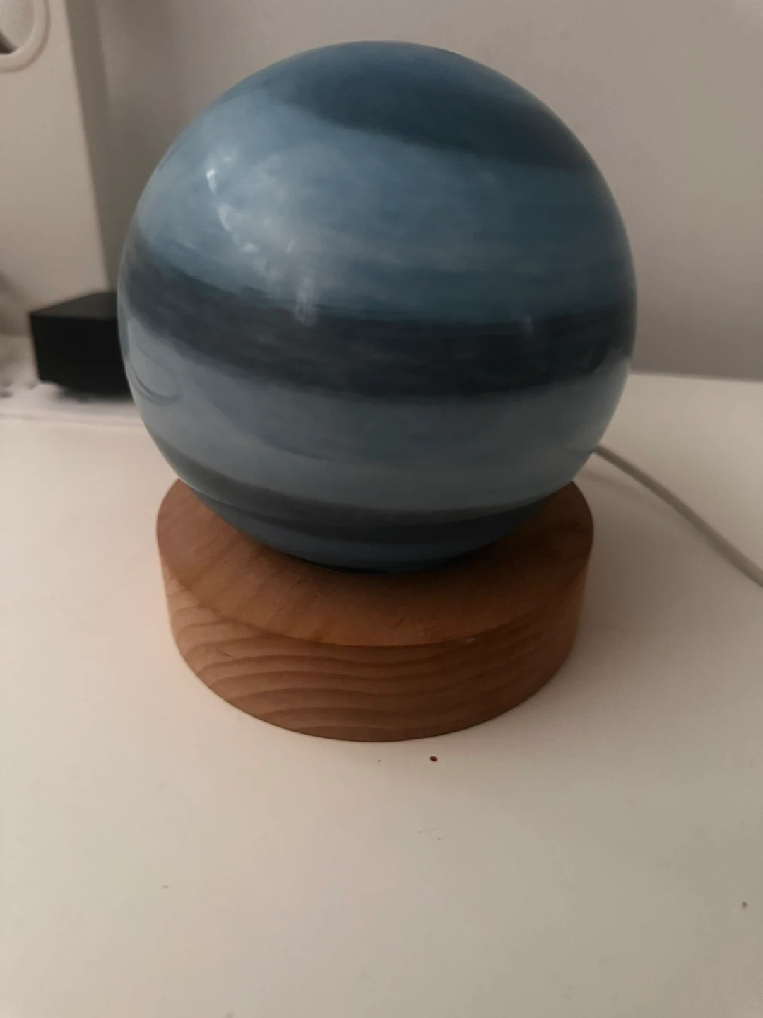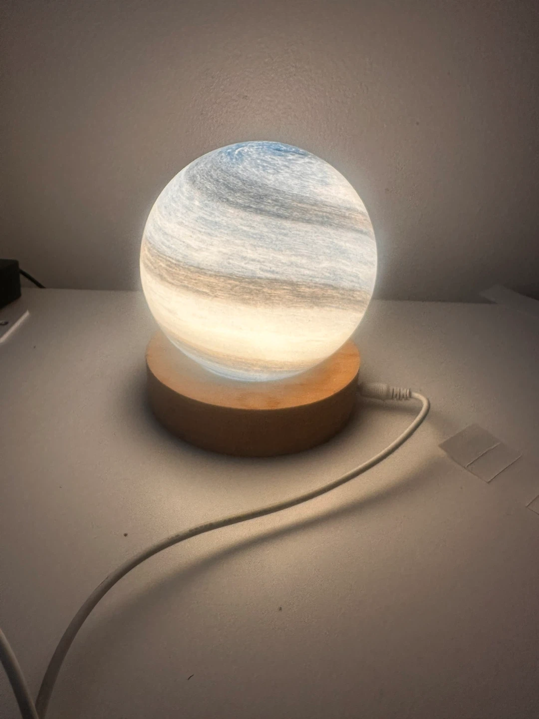 15Selling a cute globe-shaped table lamp! It has a wooden base and gives off a soft, ambient light. Perfect for a bedside table or desk. It's in great condition and includes the power adapter.