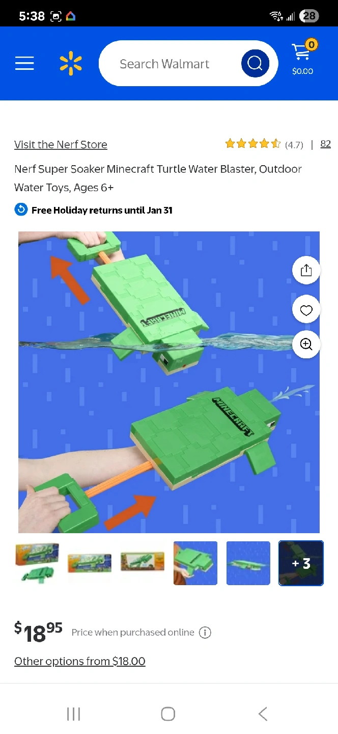 Nerf Super Soaker Minecraft Turtle Water Blaster, Outdoor Water Toys, Ages 6+ Brand new sealed Price is firm Pick up near 22nd skytrain new west