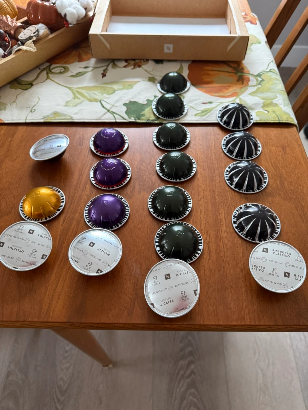 45Nespresso - Espresso & Ristretto capsules Selling espresso pods, as I don’t drink the strong stuff. 5 x Ristretto Classico (25 ml) 7 x Il Caffè (40 ml) 2 x Altissimo (40 ml) 2 x Altissimo Decaffeinato (40 ml) 2 x Voltesso (40 ml) 1 x Diavolitto (40 ml) Selling all for $12 cash. Pick up in Midnapore SE. Please check out my other ads.