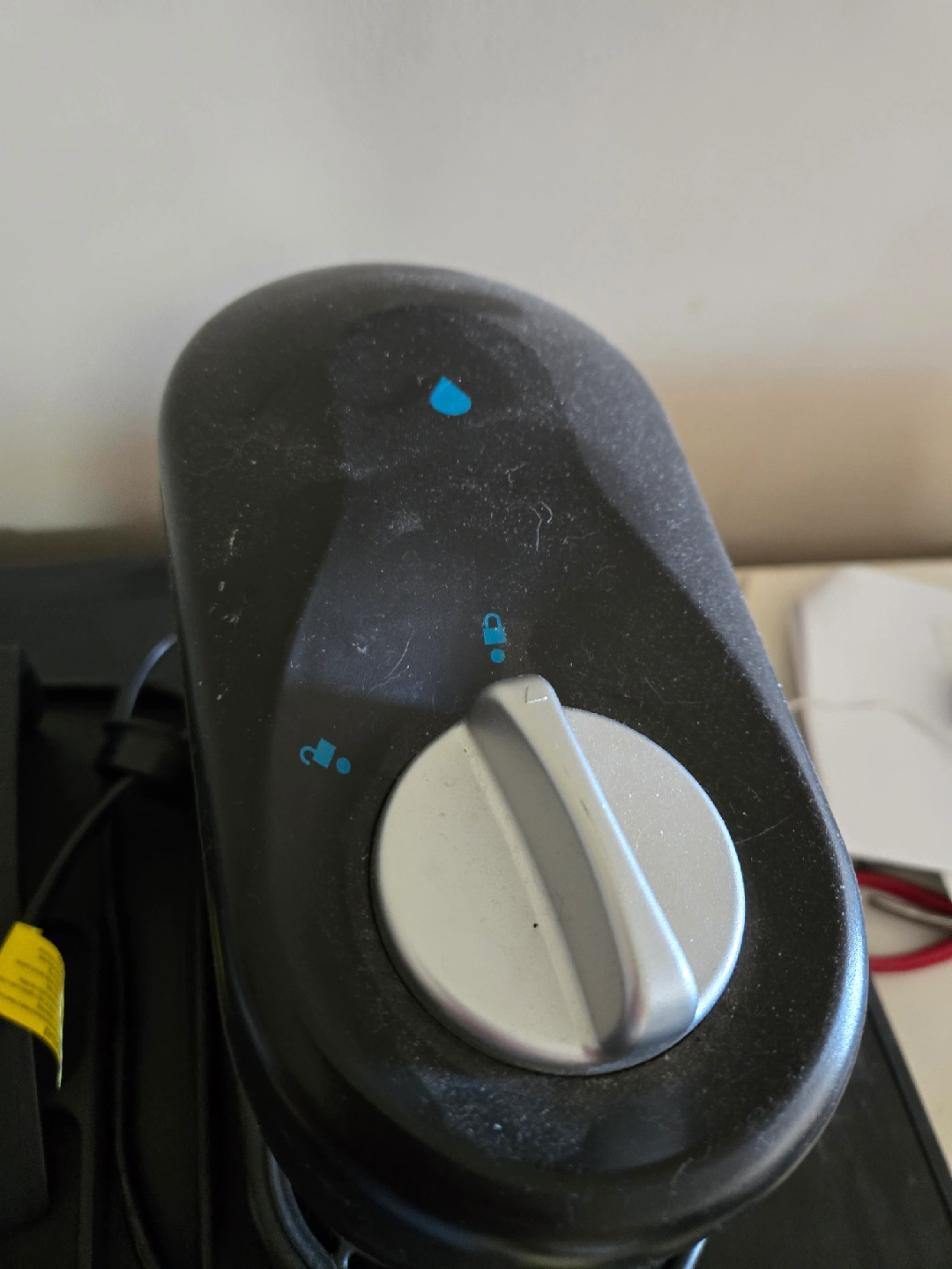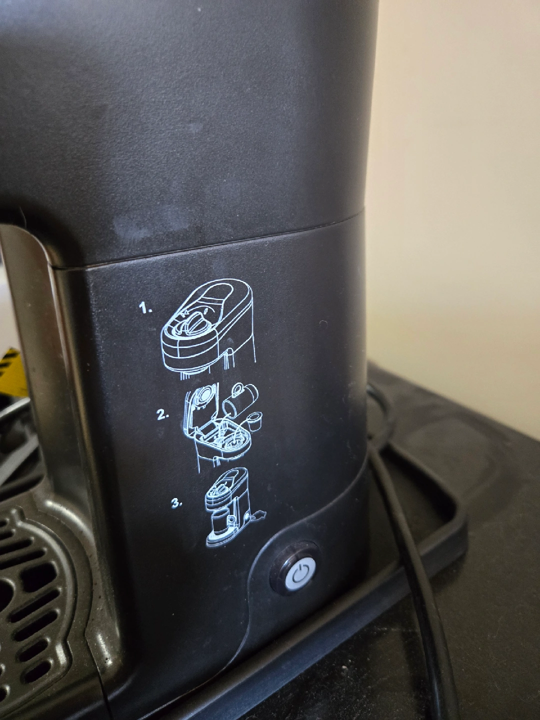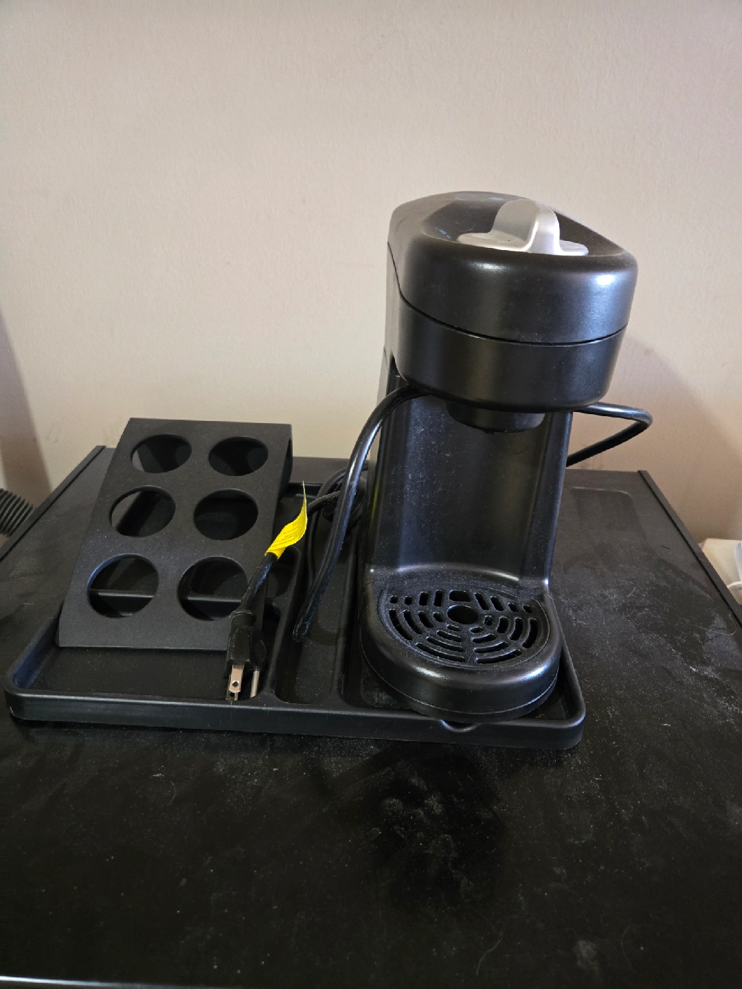 Selling a Nespresso Inissia coffee maker in black. It's in good working condition and perfect for making espresso at home. It comes with the pod holder as well