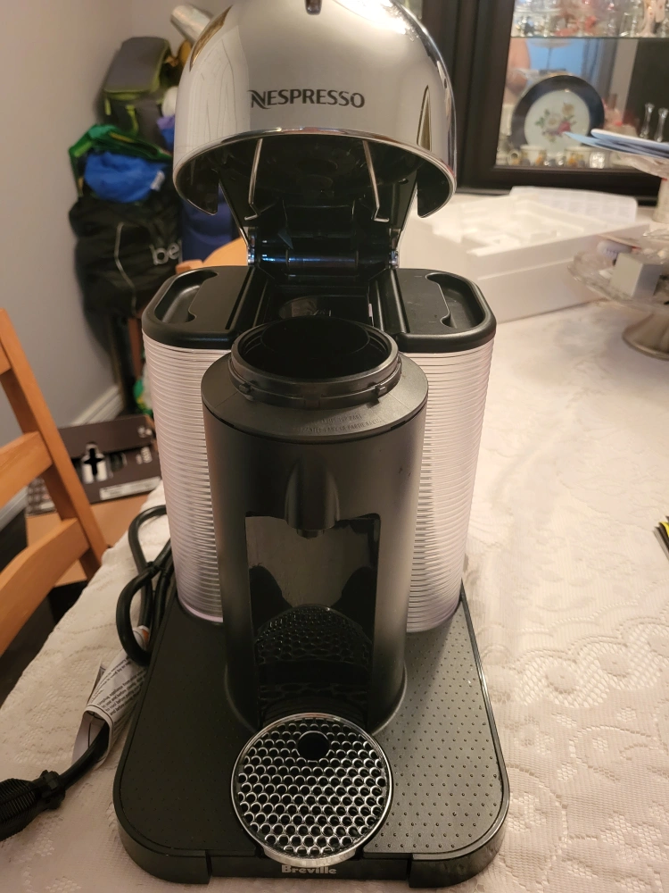 Selling a Nespresso Vertuo coffee machine made by Breville! It's in great condition and ready to make some delicious coffee. This machine uses the Vertuo capsules and has multiple cup sizes. It also features centrifusion technology!