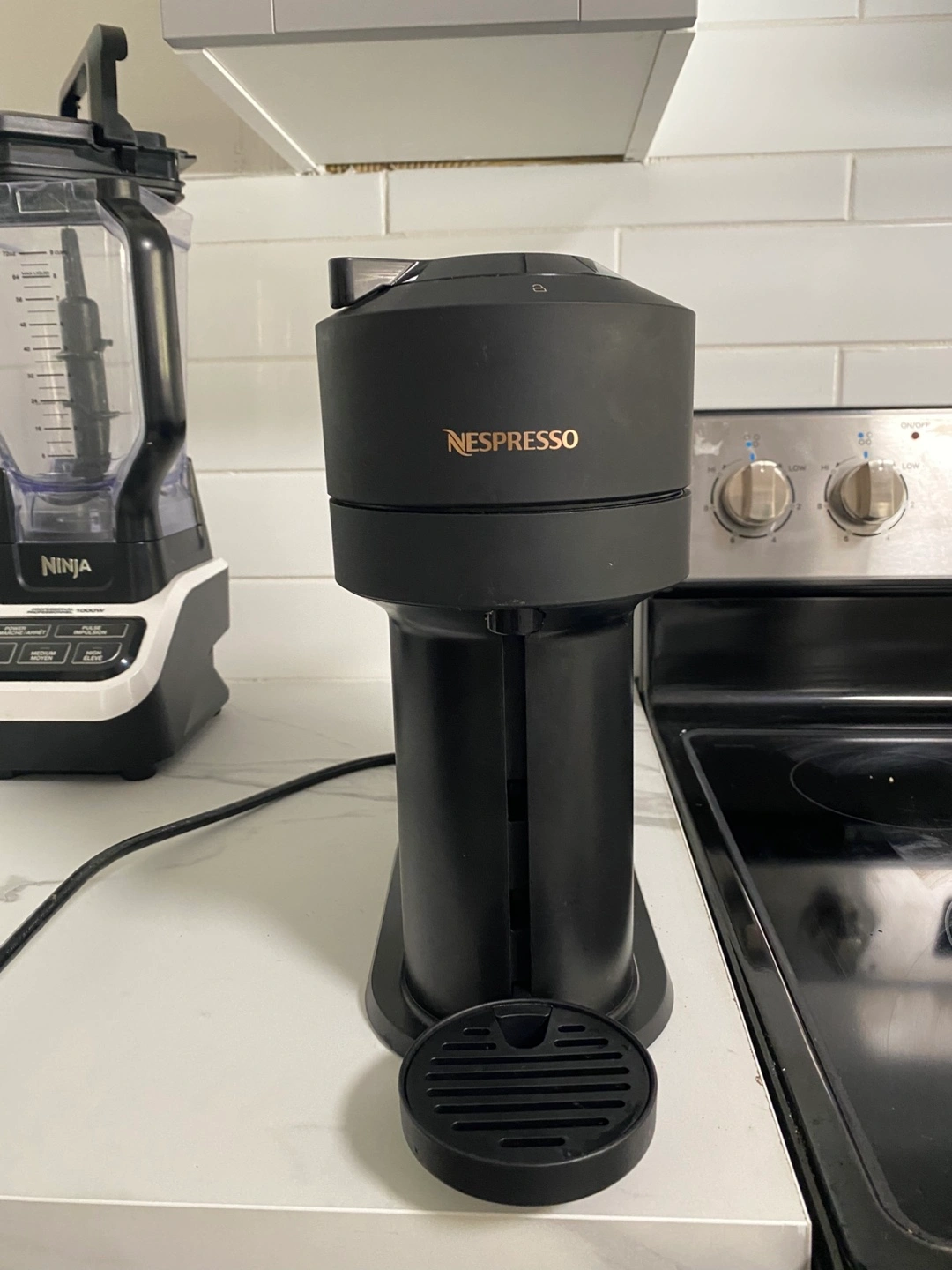 Selling a Nespresso Vertuo Next coffee machine in matte black. This machine is a Breville. Purchased last August. In perfect condition just upgraded to a different machine. The slider/switch to open is a bit sticky. Regularly cleaned and descaled. Freshly washed and ready for its new home!