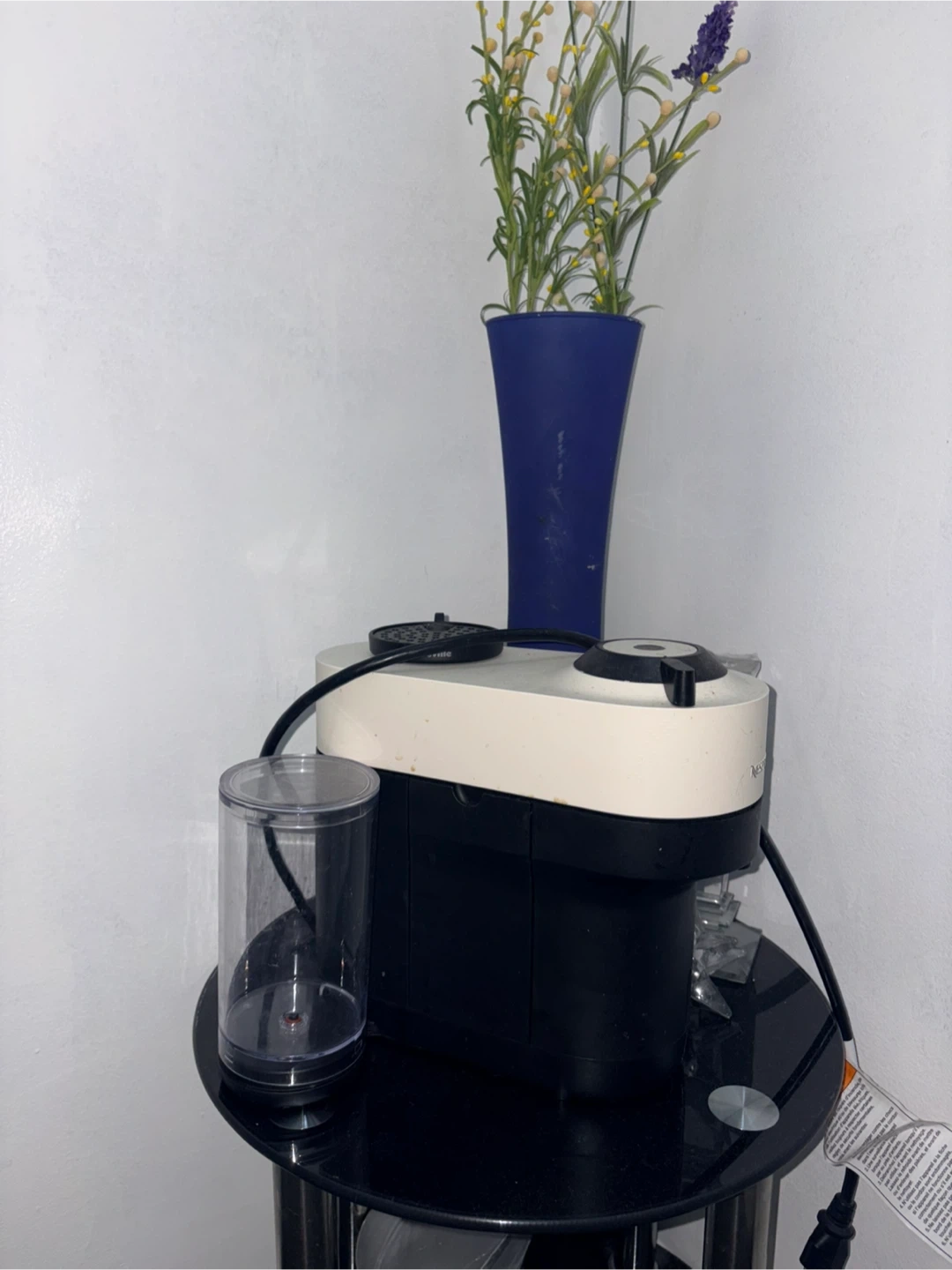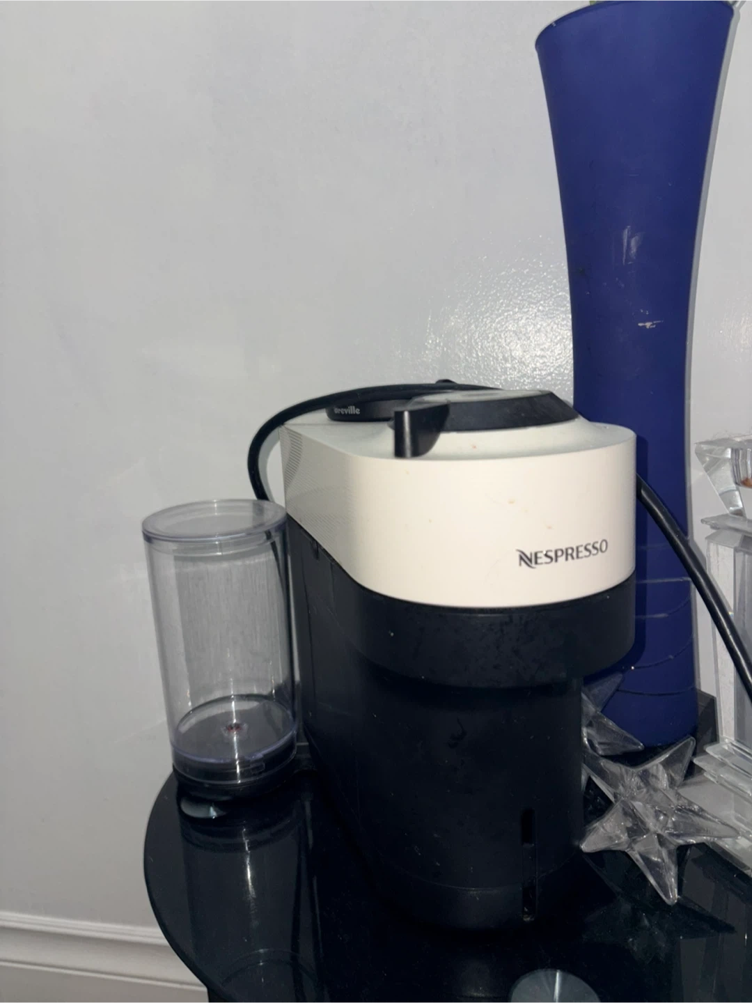 Selling a Nespresso Vertuo Pop+ coffee machine! It's in great shape and ready to make delicious coffee. The design is compact, perfect for any kitchen space. Dimensions are approximately 21.9 cm wide, 26.5 cm high, and 35.6 cm deep. It also comes with a 750 ml water tank
