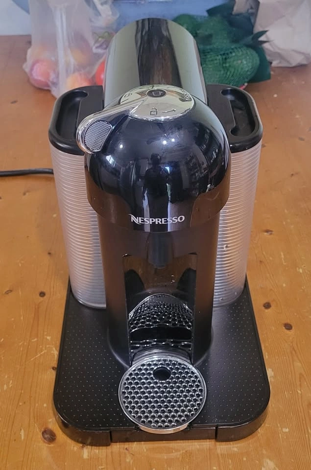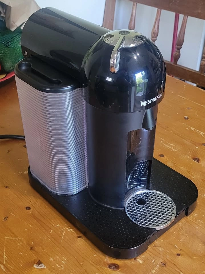 Nespresso Vertuo coffee machine in good working condition. Uses Vertuo pods for espresso and coffee. One-touch operation with automatic capsule ejection.