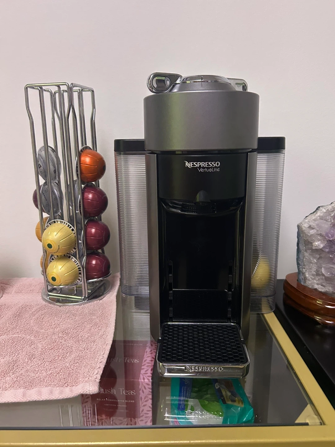 10Selling a Nespresso VertuoLine coffee machine. It's in great condition and ready to make delicious coffee! Perfect for any coffee lover looking for a convenient and easy-to-use machine. Comes with pods and pod holder.