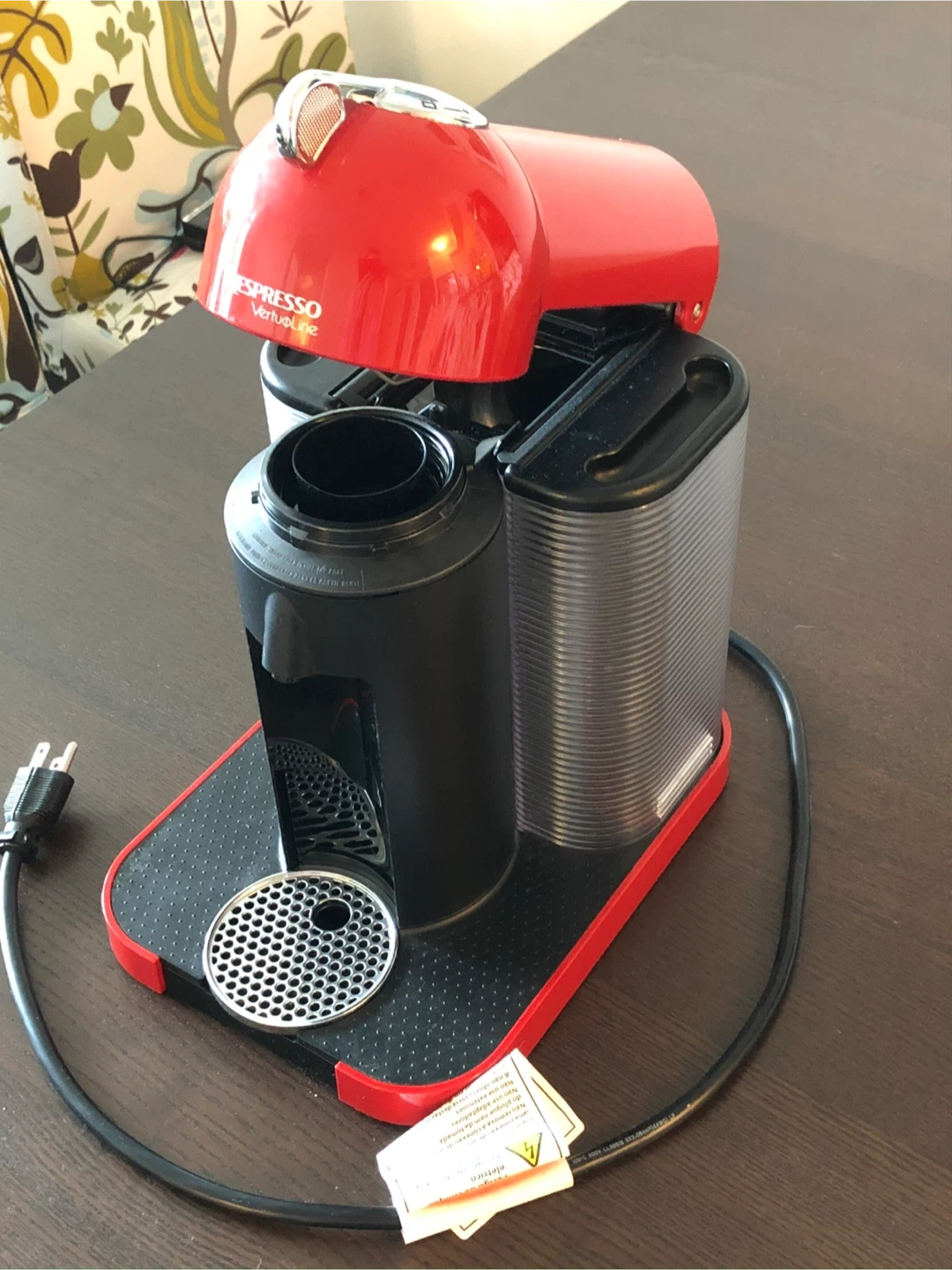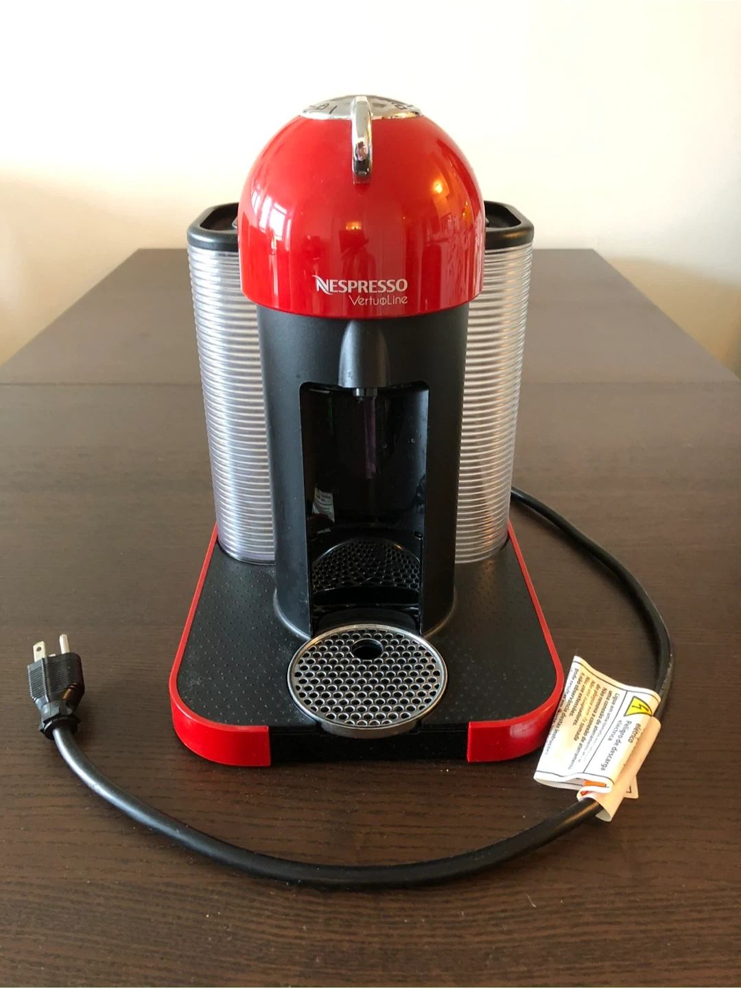 Selling a Nespresso VertuoLine coffee machine in red! Barely used - I have learned that I actually prefer french press coffee :-) Comes from Smoke free Pet free environment