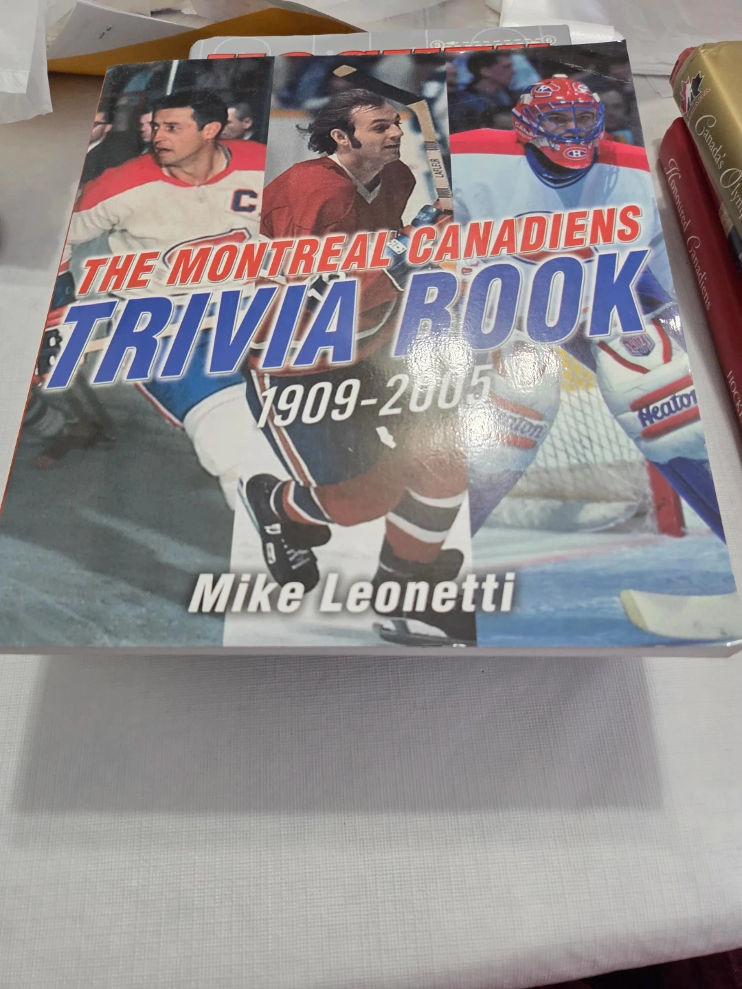 This is The Montreal Canadiens Trivia Book, covering the years 1909-2005. It's authored by Mike Leonetti. This book is great for any Canadiens fan looking to test their knowledge.