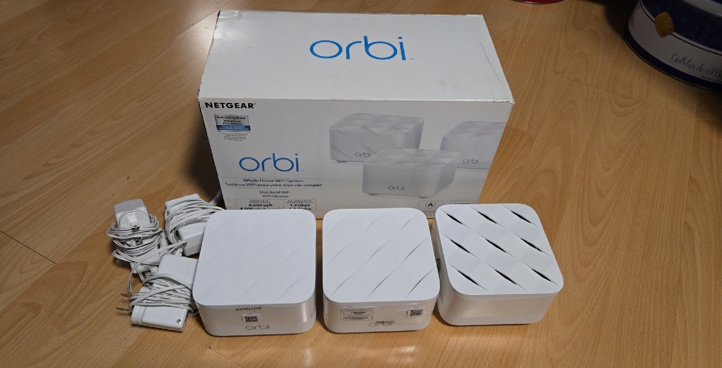 60Selling a Netgear Orbi Whole Home WiFi System in excellent condition! This dual-band WiFi system covers up to 4,500 square feet and provides WiFi speeds up to 1.2 Gbit/s. It comes with an Orbi WiFi router and satellites to deliver unparalleled WiFi coverage. Also included is the original box.