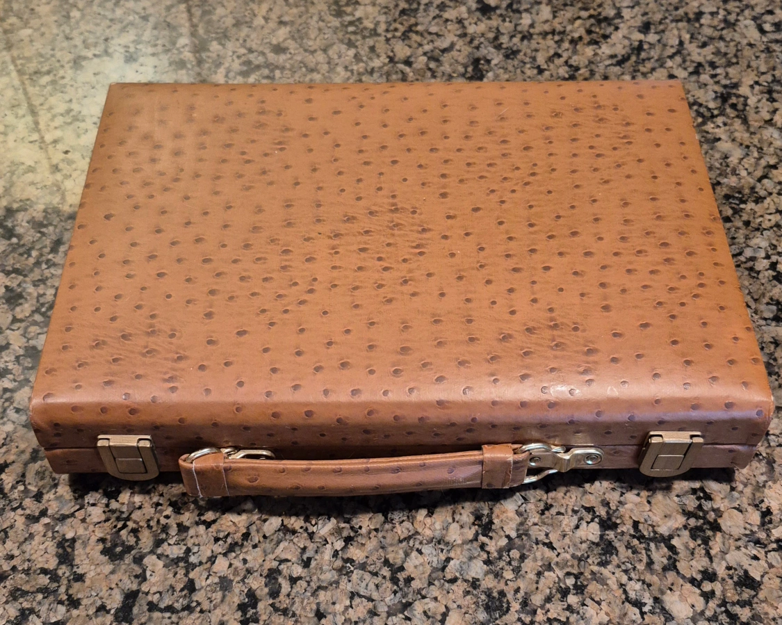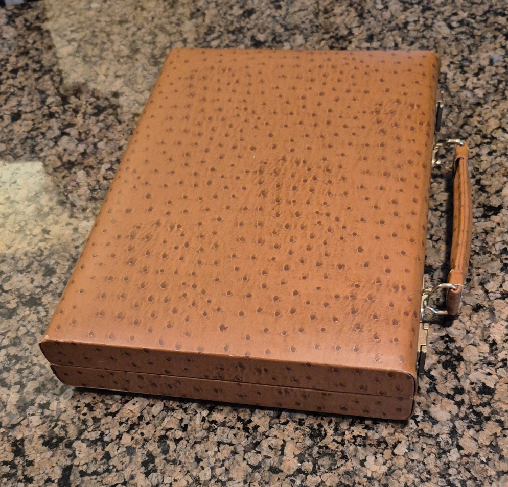 Selling a backgammon game set! It comes in a stylish brown leather-like carrying case. All the pieces are included, as well as the dice and doubling cube. It's ready for a new home!