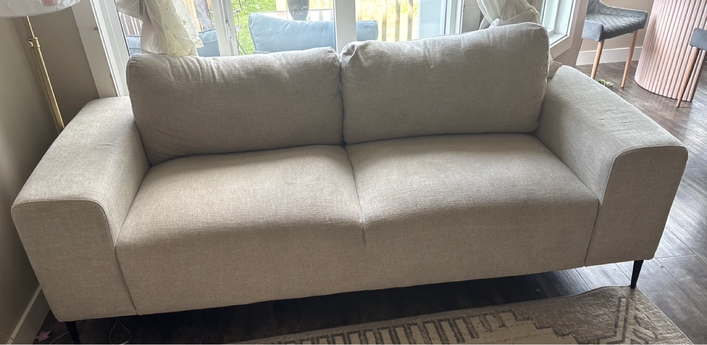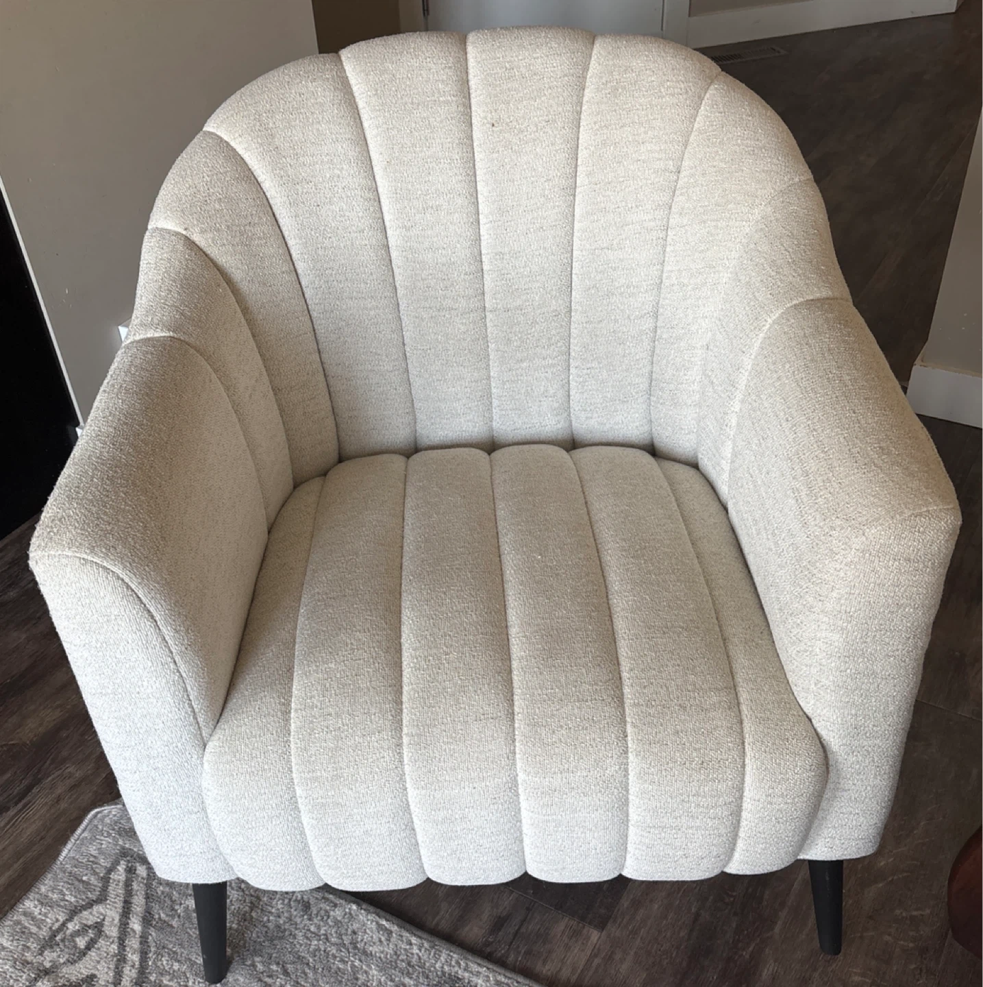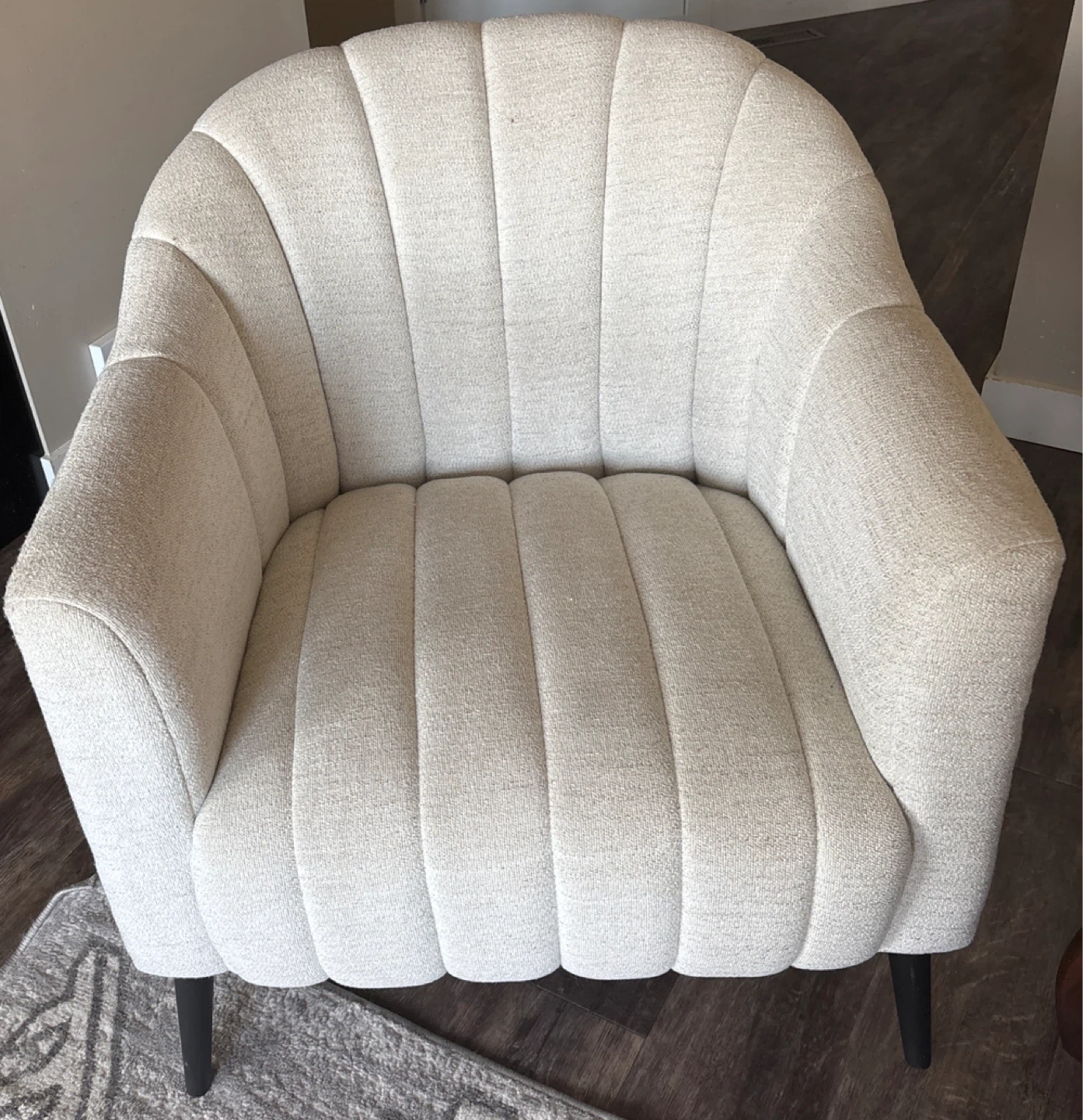 Selling 2 neutral-coloured accent chair and 1 loveseat. All of them are in great condition and would look lovely in any living space! The chair has a unique ribbed design, and the loveseat is a classic, comfortable style. Perfect for adding some extra seating to your home