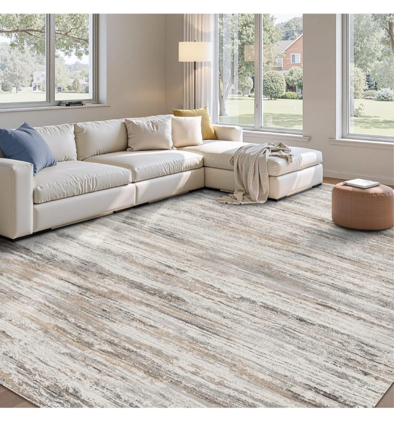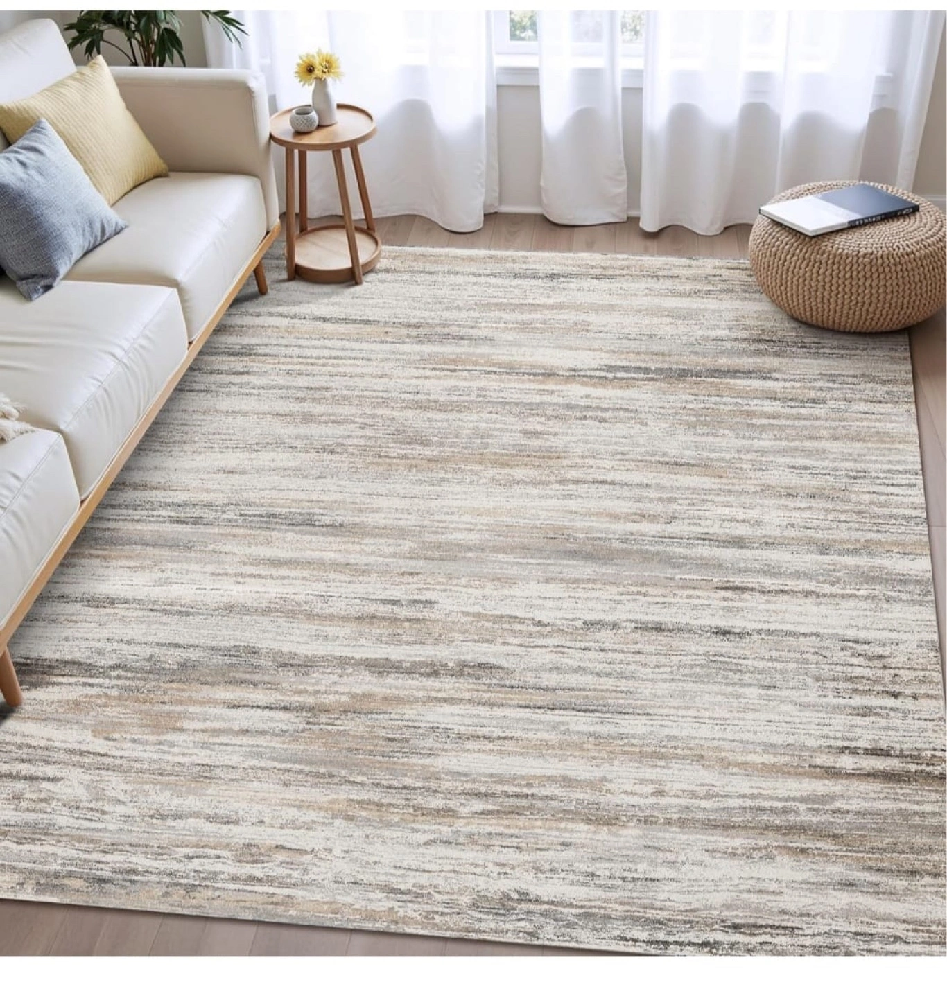 Abstract Area Rug for Living Room Carpet for Bedroom Dining Office Room Mat Waves Pattern Grey & Beige 5x7 FT Brand new