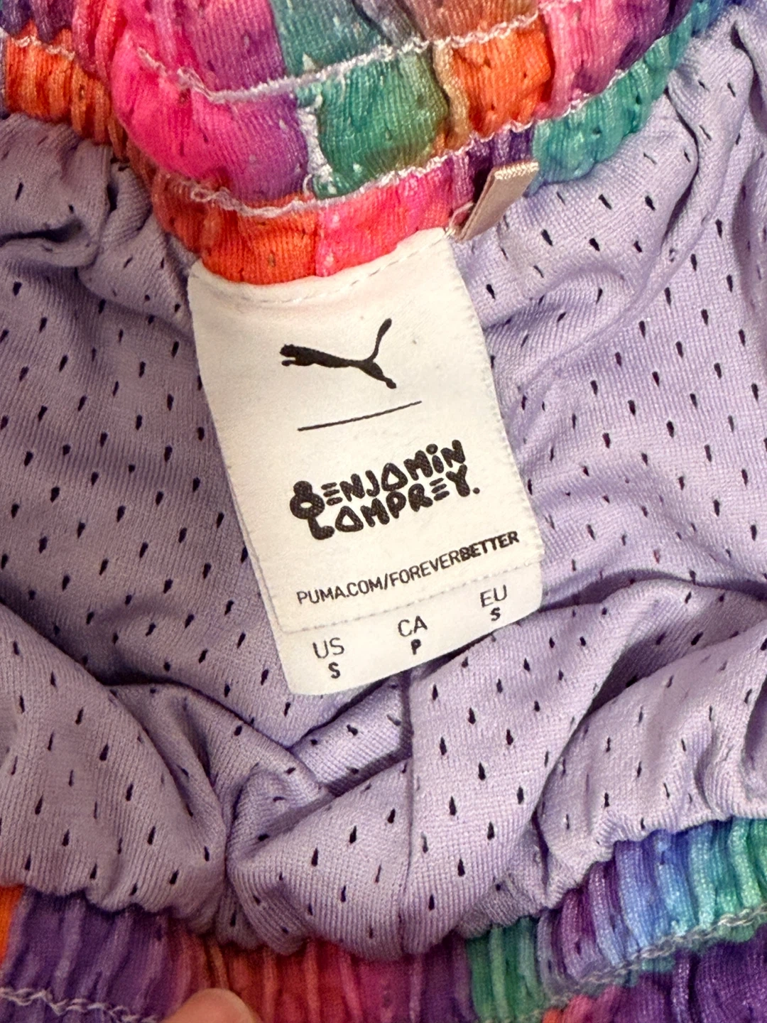 Fun and colourful Puma x Benjamin Lanfrey shorts in size small! These shorts feature a vibrant, eye-catching design with a comfortable fit. Perfect for workouts or casual wear!
