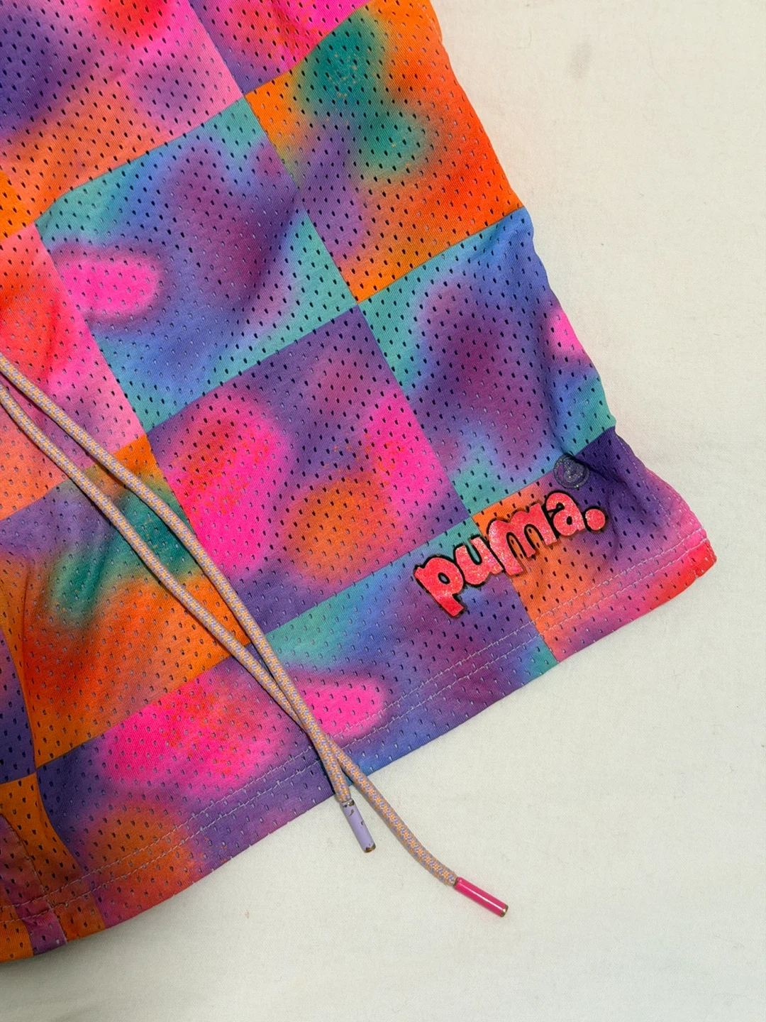 Fun and colourful Puma x Benjamin Lanfrey shorts in size small! These shorts feature a vibrant, eye-catching design with a comfortable fit. Perfect for workouts or casual wear!
