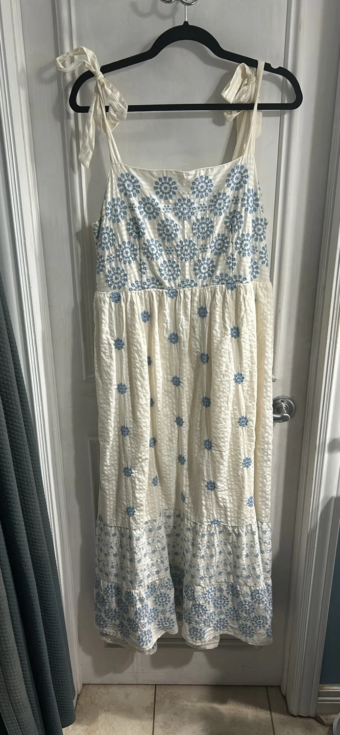 10This is a lovely sundress featuring a floral embroidered pattern from American Eagle. It's perfect for warm weather and casual outings. The dress has a comfortable fit and a charming design. The material feels lightweight and breathable, making it ideal for summer days. Still has tags - brand new