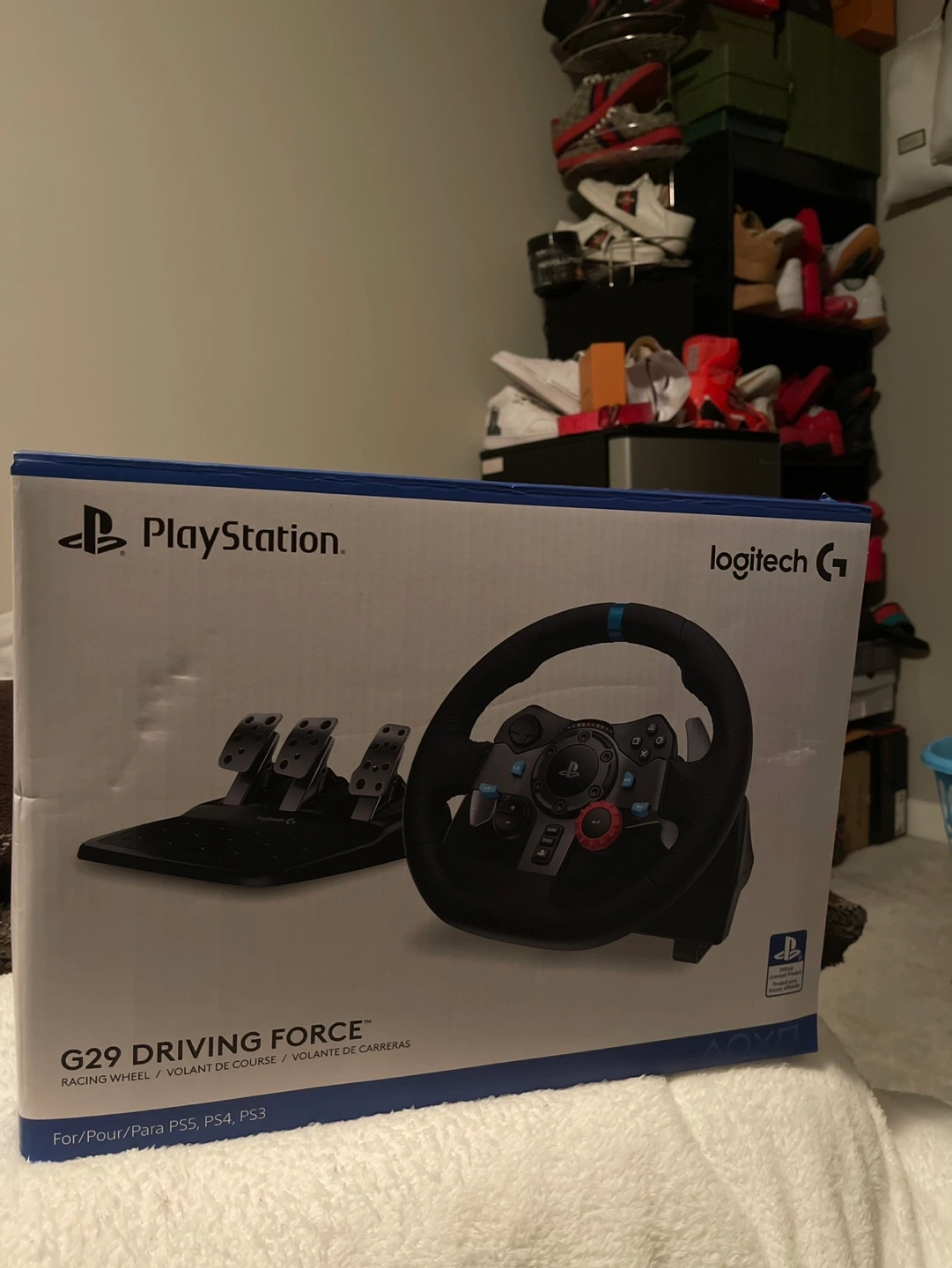 20Brand new in box. Racing wheel and pedal set. Compatible with PlayStation 5 and PlayStation 4. Includes wheel, pedals, and all necessary components.