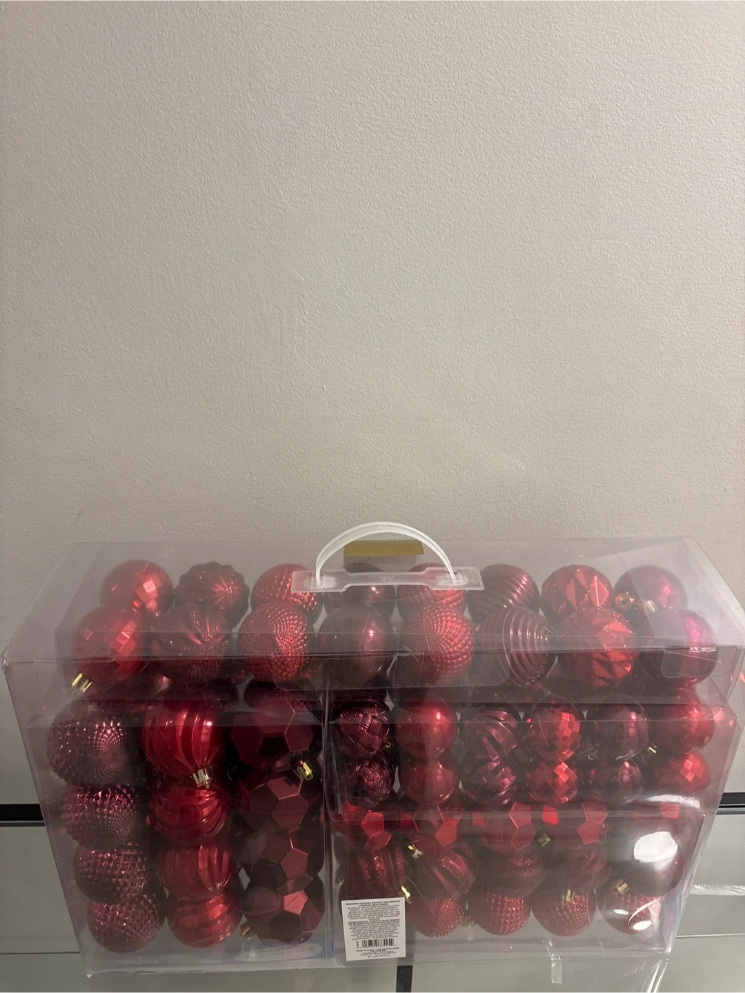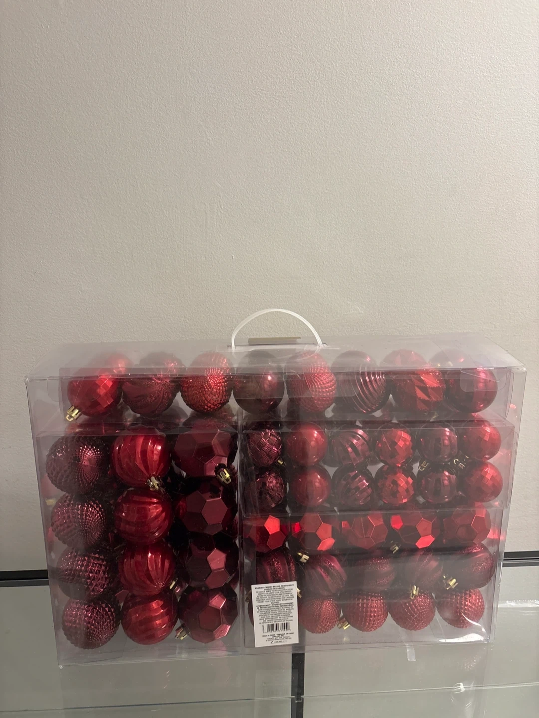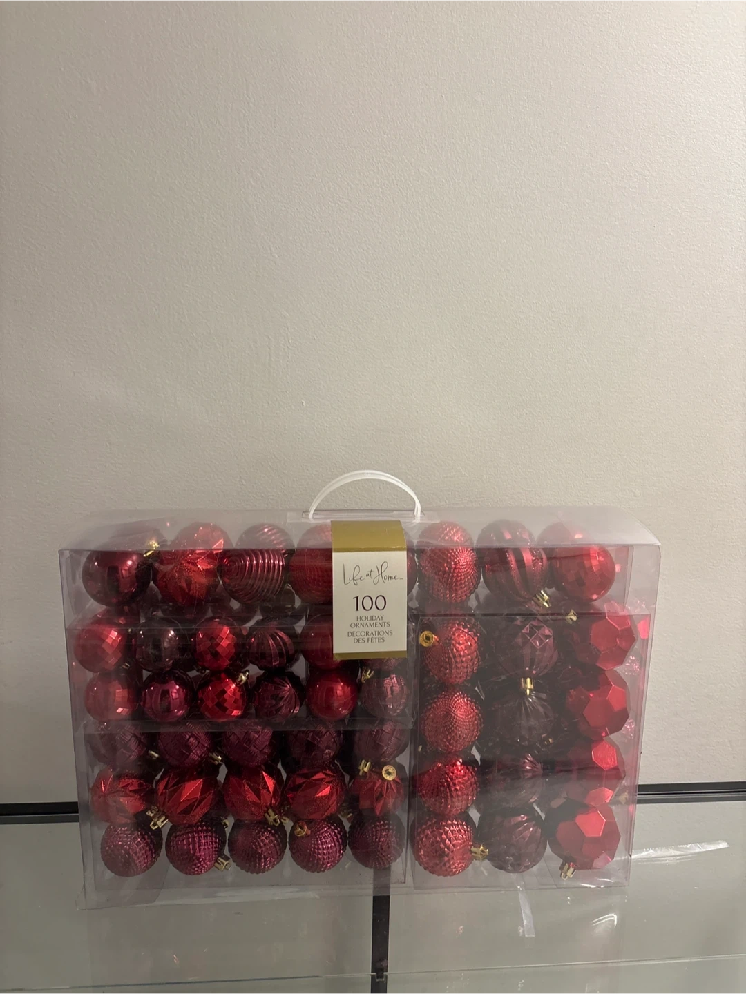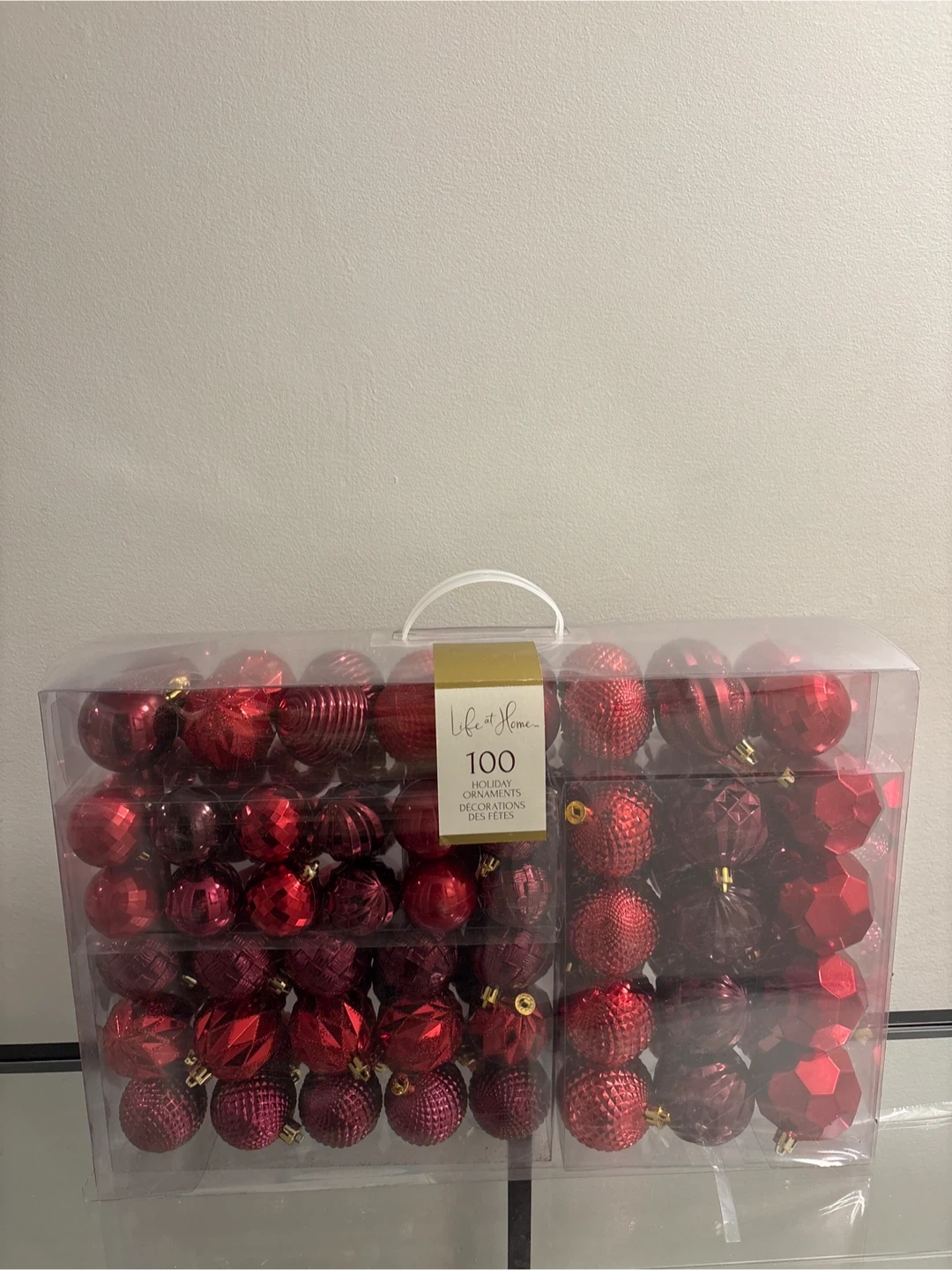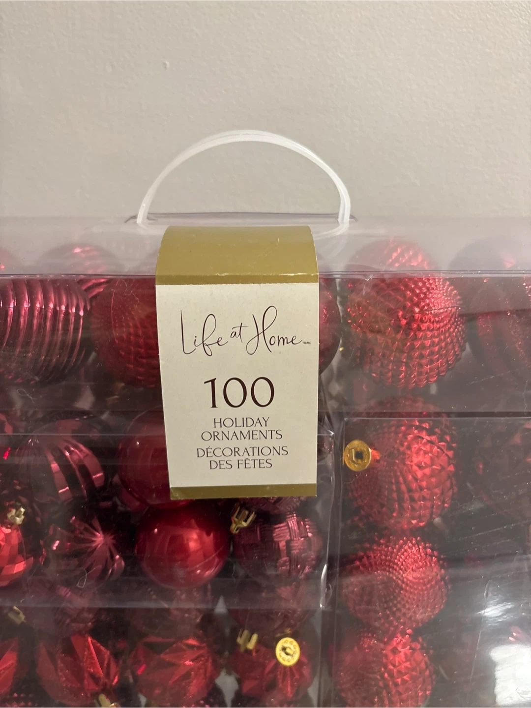 98Get ready for the holidays with this set of 100 Life at Home holiday ornaments! They come in a variety of red shades and designs to add a festive touch to your tree or decorations