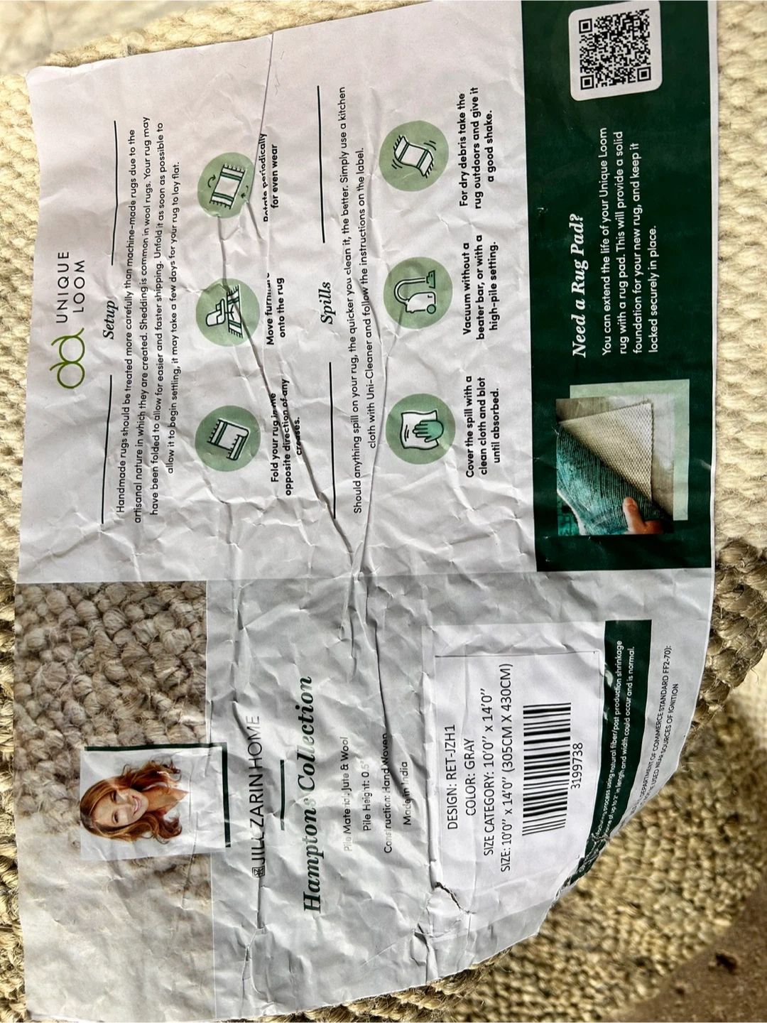 15Selling a Unique Loom Hampton Collection area rug. It's a stylish addition to any room! - Brand: Unique Loom - Collection: Hampton - Color: Gray - Size: 10'0" x 14'0" (305CM x 430CM) - Material: Jute & Wool This rug will add a touch of elegance to your home!