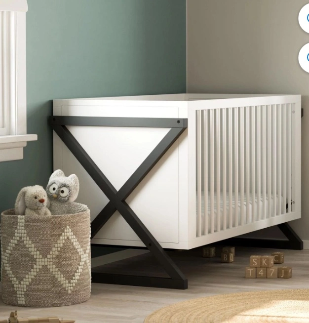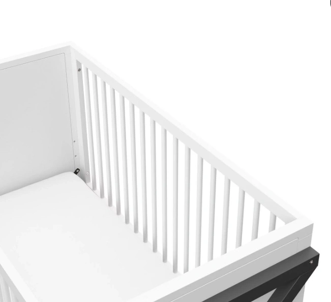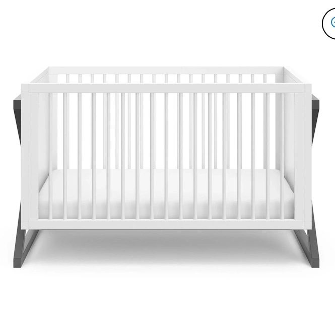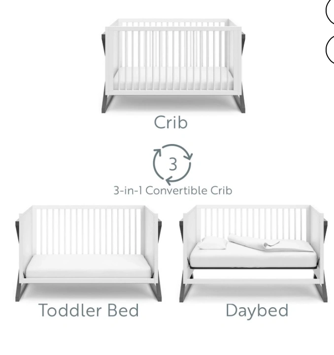 New in Box. 3-IN-1 CONVERTIBLE CRIB: Converts from baby crib (mattress sold separately) to toddler bed (compatible with 1 or 2 toddler guardrails, each sold separately) and daybed MODERN 2-TONE DESIGN: Minimalist 2-tone design makes this crib easy to match with any style nursery; Crafted with pine wood, poplar dowels, and wood composites GREENGUARD GOLD CERTIFIED: Certified products are screened for more than 10,000 chemicals and VOCs known to pollute indoor air JPMA CERTIFIED, SAFETY TESTED: Expert tested by third-party, accredited laboratories to meet or exceed all of the applicable category voluntary and mandatory safety standards; Applied finish tested to meet or exceed the applicable ASTM and CPSIA safety standards ADAPTS TO YOUR GROWING BABY: Equipped with an adjustable mattress support base with 3 different height options; Designed to fit any standard full-size crib & toddler mattress (mattress sold separately); Assembly required AWARD-WINNING BRAND: Exclusively from Graco, proud recipient of the 2022 Women’s Choice Award for 9 out of 10 Customer Recommended Baby & Kids Furniture, and Parent Tested Parent Approved (PTPA) Seal of Approval for nursery and children’s furniture CRIB DIMENSIONS: Width (58.15 inches) x Depth (29.53 inches) x Height (35.02 inches) x Weight 69.3 lbs)