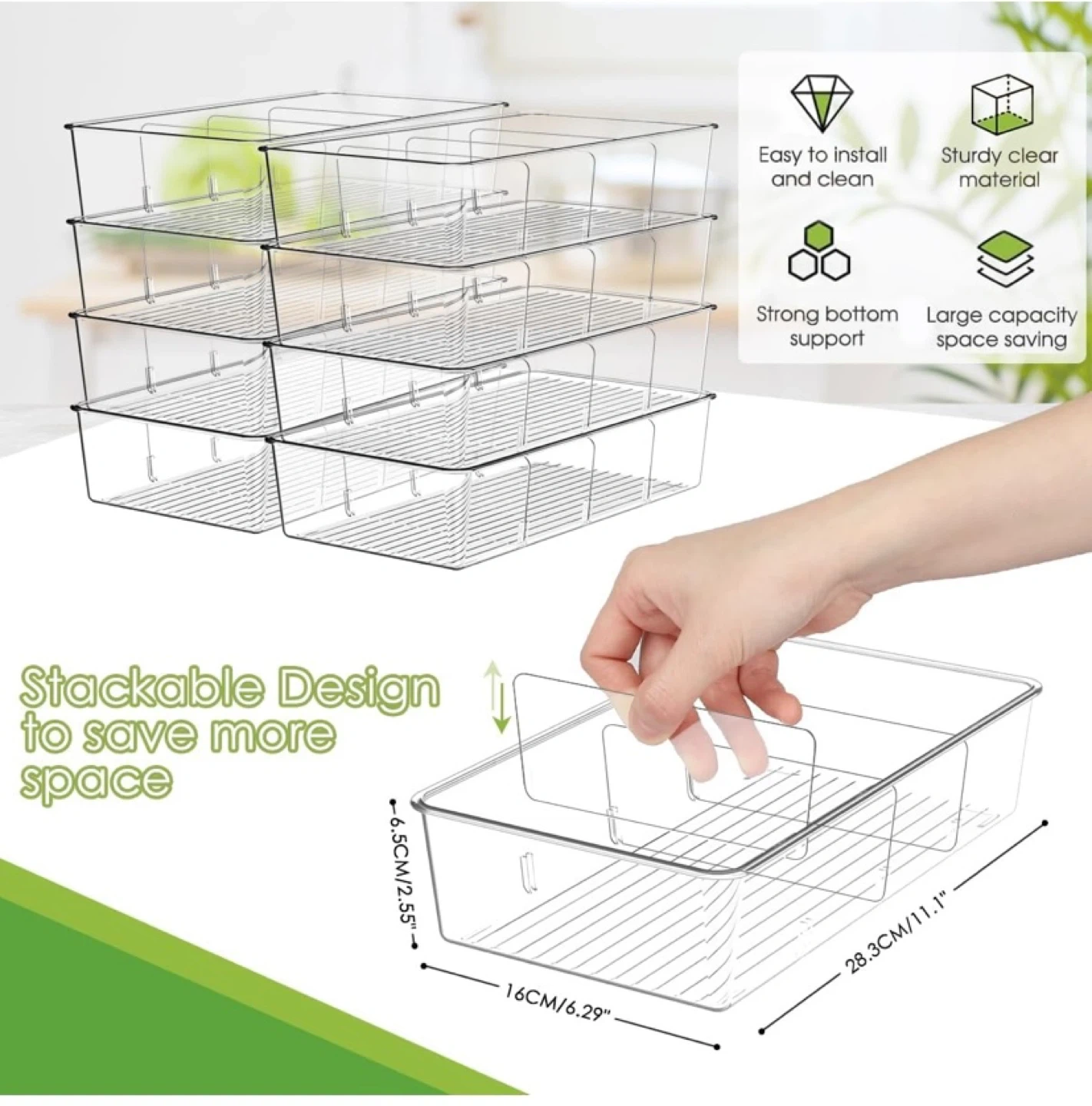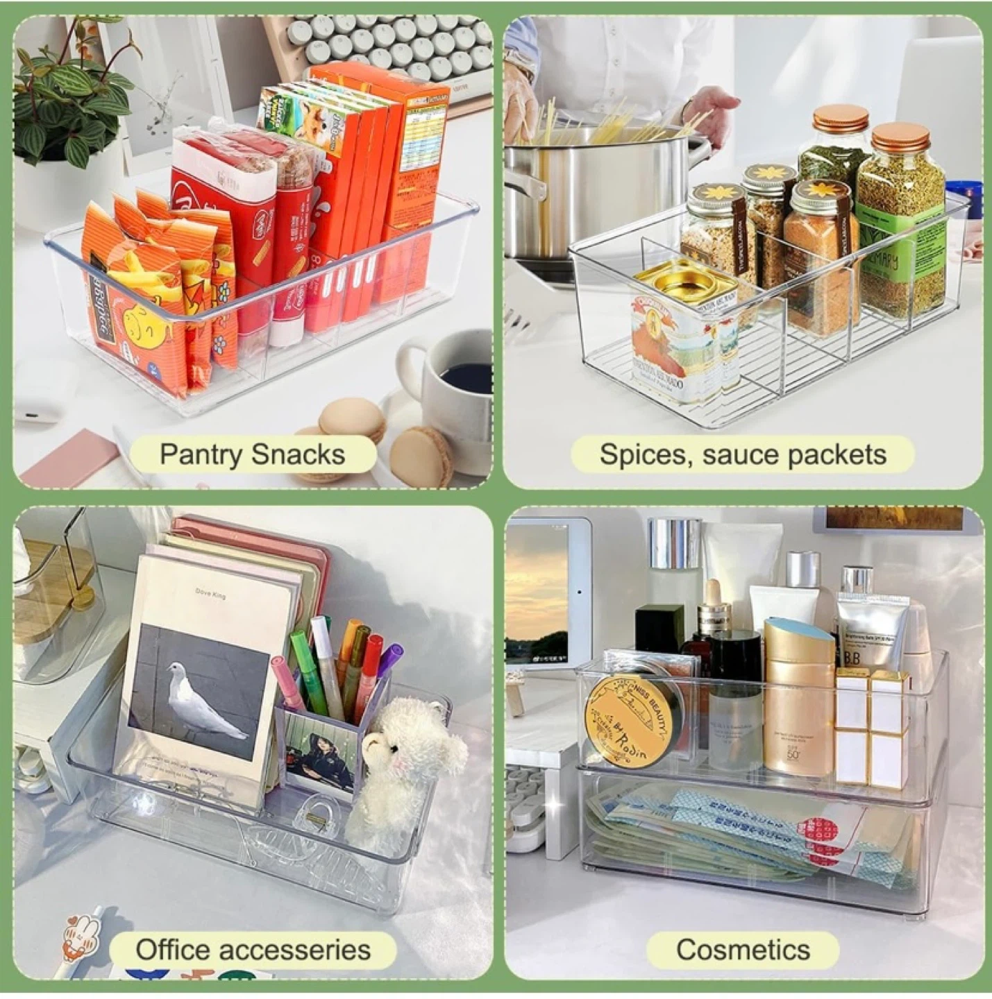 291New 6 Pack Storage Organizer Bins Clear With Removable Dividers $20 Pickup in Whitby