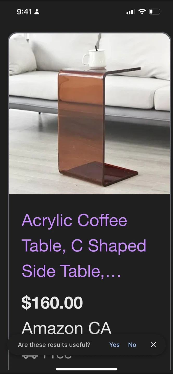 137Wayfare Price $160 Selling an acrylic C-shaped side table! It's great for small spaces and adds a modern touch to any room. The table is made of acrylic material and is 55cm/60cm/65cm (21.65in/23.6in/25.6in) in height and 30cm (11.8in) wide. Originally bought for $160